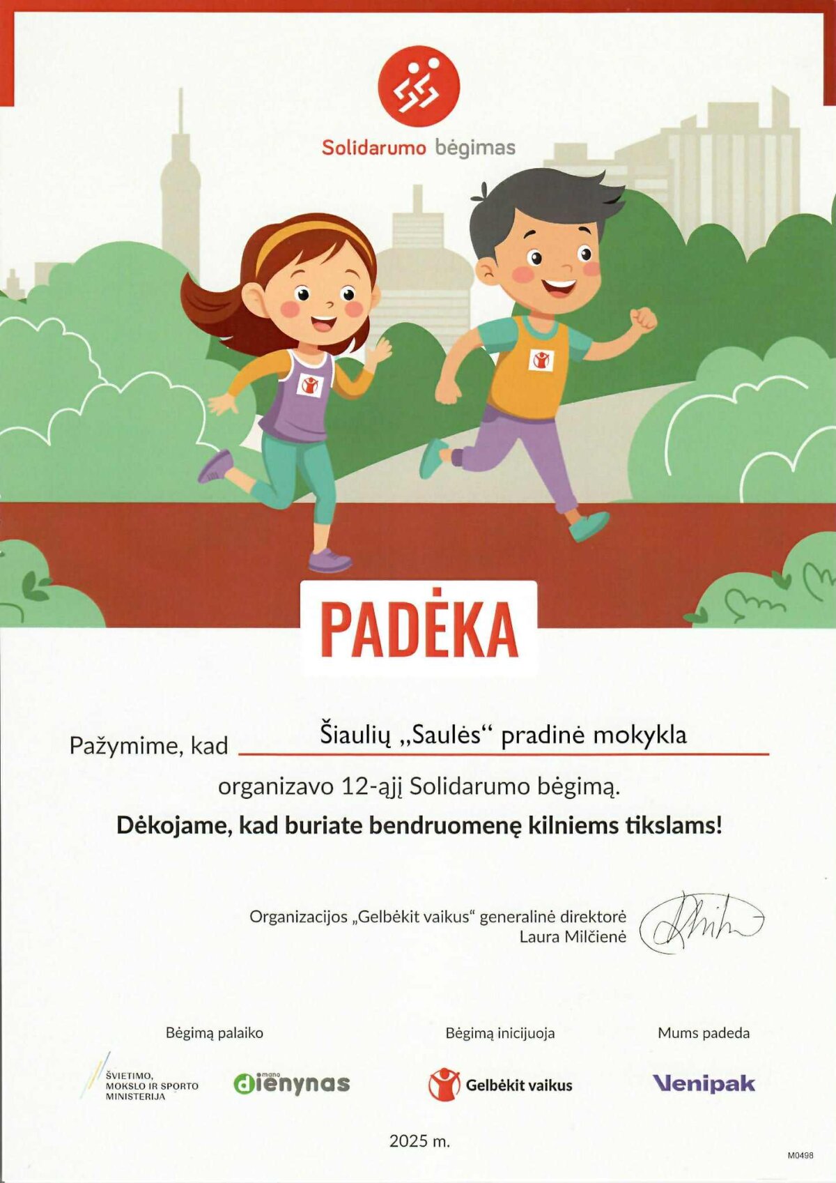 Tariame nuoširdžią padėką visai mokyklos bendruomenei už aktyvų dalyvavimą iniciatyvoje „Solidarumo bėgimas 2025“. Solidarumas - tai ne tik gražus žodis, bet ir konkretūs veiksmai, kurie keičia gyvenimus.