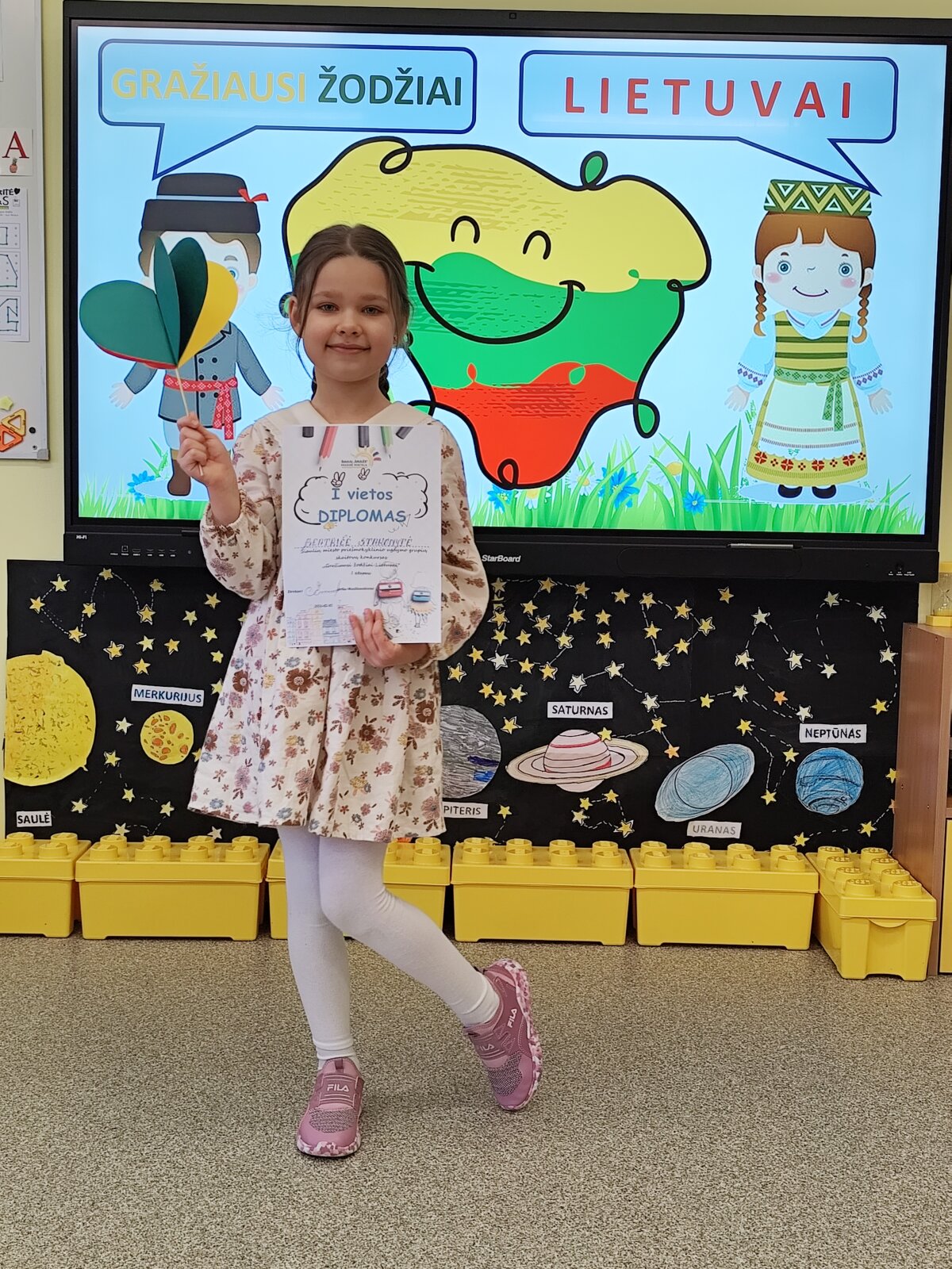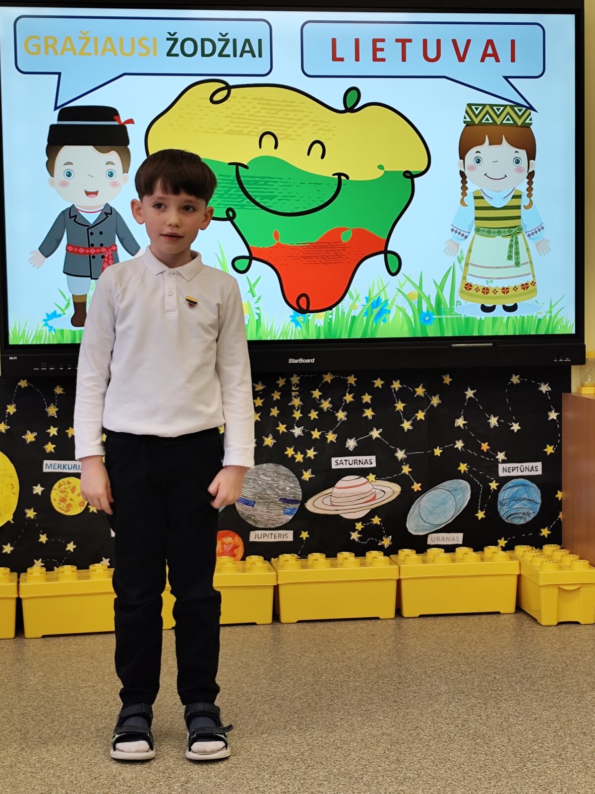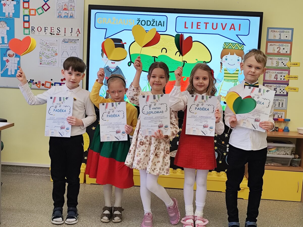 Konkurse dalyvavo penki mokyklos priešmokyklinių grupių ugdytiniai: Majus (PUG1), Kotryna (PUG1), Aleks (PUG2), Beatričė (PUG2) ir Saulė (PUG2). Vaikai deklamavo kūrinius, skirtus Lietuvai, atskleisdami savo meninius gebėjimus, drąsą ir meilę gimtajam kraštui.