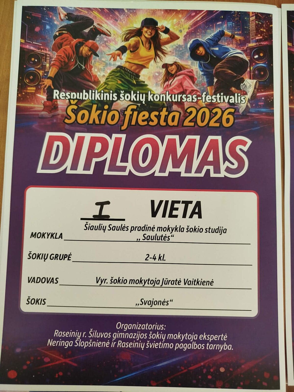 Džiaugiamės šokėjų pasiekimu ir dėkojame mokytojai Jūratei Vitkienei bei tėveliams už palaikymą, kuris prisideda prie mokinių ugdymo ir jų meninių gebėjimų plėtojimo.