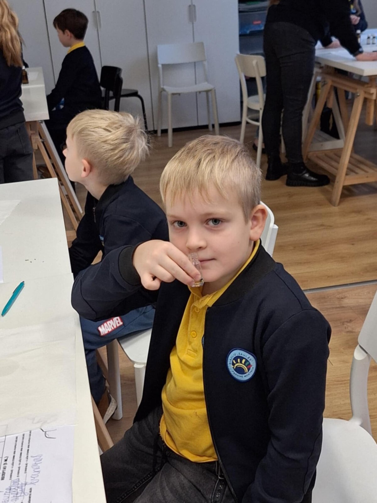 Edukacijos dalyviai turėjo galimybę išmėginti parfumerio darbą praktiškai. Vaikai atrinko esencijas, derino skirtingus kvapus ir patys susikūrė unikalų aromatą. Šis užsiėmimas leido mokiniams išbandyti kūrybinį procesą ir pasijausti tikrais parfumeriais.
