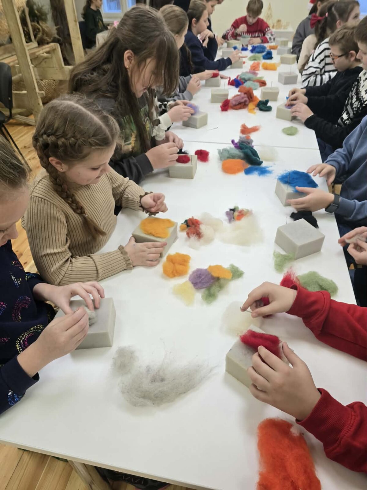 Svarbi kelionės dalis buvo apsilankymas Etninės kultūros ir tradicinių amatų centre, kuriame mokiniai susipažino su vilnos vėlimo amatu. Edukacijos metu buvo pristatytos vilnos savybės, tradicijos ir naudojami įrankiai. Mokiniai sužinojo apie šio amato istoriją ir praktikoje patys išbandė vilnos vėlimą. Kūrybinėje veikloje jie sukūrė įvairių spalvingų ir originalių darbelių, kurie tapo tikrais jų kūrybingumo ir įsitraukimo įrodymu.