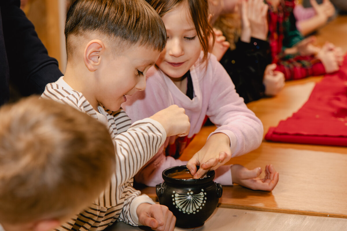 Sugrįžę į gamtos mokyklą ugdytiniai kepė kūčiukus (šliūžukus) krosnyje, stebėjo kepimo procesą ir patys dalyvavo veikloje. Ši patirtis leido vaikams praktiškai susipažinti su lietuviškomis Kūčių tradicijomis. Vėliau vyko kūrybinė veikla: kalėdinio žaisliuko gamyba, ugdžiusi vaikų kūrybiškumą ir smulkiąją motoriką.