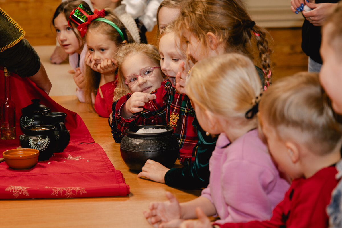 Edukacijos metu vaikai buvo supažindinti su lietuvių etnokultūros elementais ir senosiomis Kalėdų bei Kūčių tradicijomis. Pažintinis pasivaikščiojimas miške kartu su miškų deive Medeina tapo prasminga įžanga į gamtos pažinimą žiemos laikotarpiu bei pagarbų santykį su aplinka.