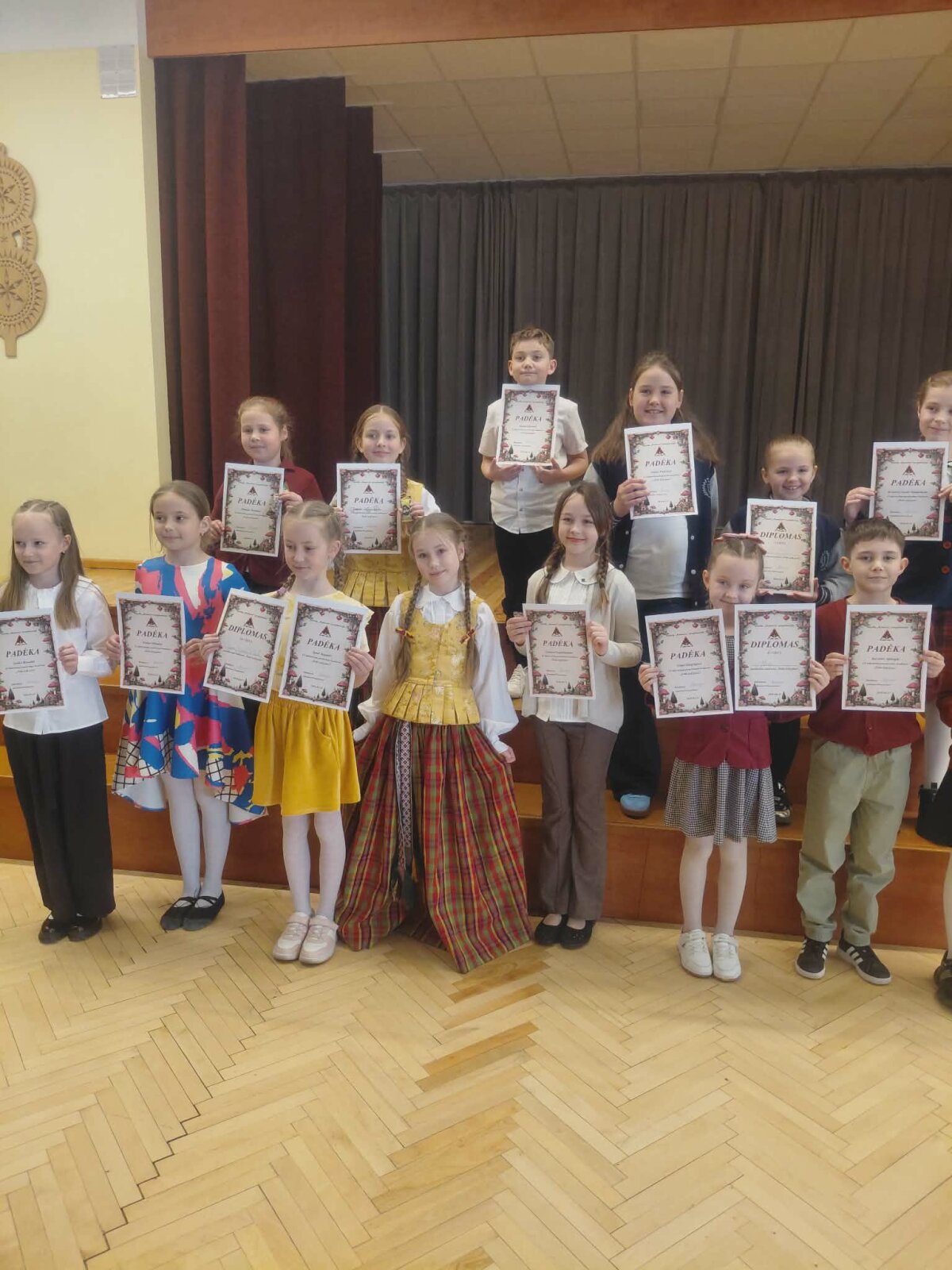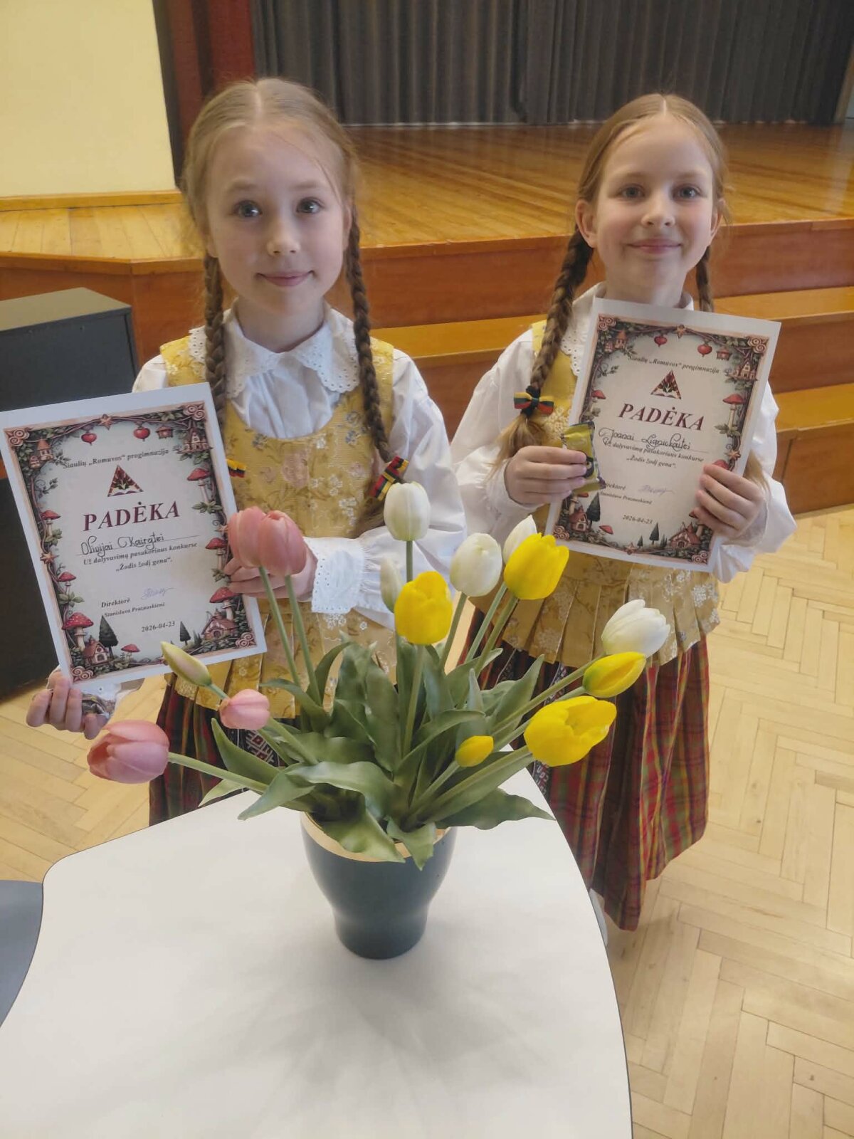 Tarp dalyvių pasirodė 2c klasės mokinės Joana Ligniskaitė ir Olivija Kairytė. Mergaitės sekė sakmę „Apie mergelę ir verpiančią laumę“. Jų pasakojimas išsiskyrė paslaptinga nuotaika ir gebėjimu įtaigiai perteikti tekstą.