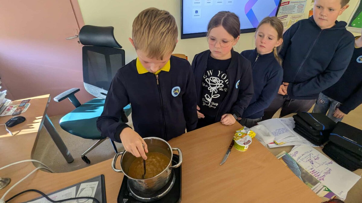 Šią savaitę ketvirtos klasės mokiniai per gamtos mokslų pamoką dalyvavo praktiniame kulinariniame eksperimente - mokėsi virti karamelę.