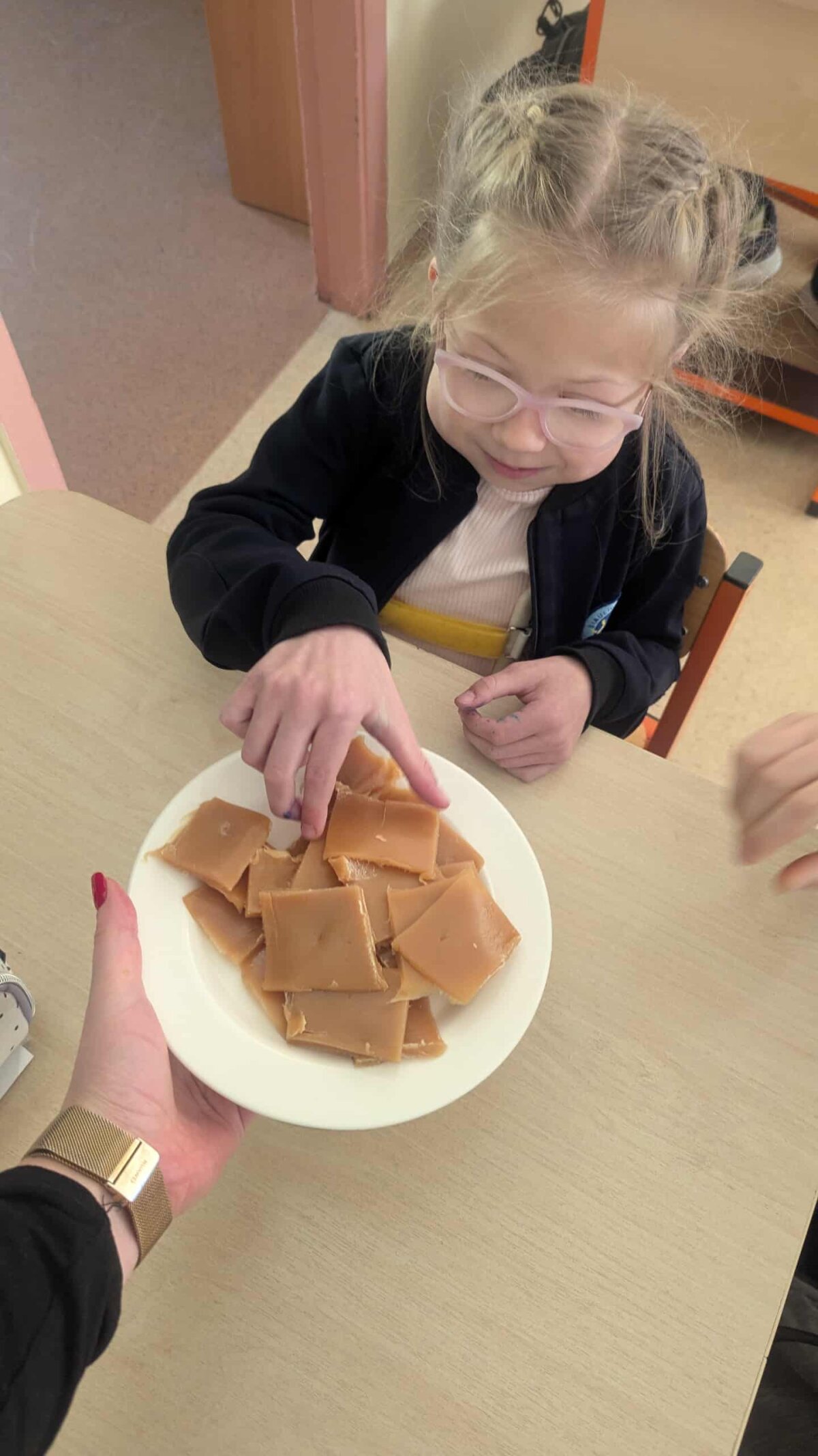 Prieš pradedant gamybą, buvo aptartos saugaus darbo taisyklės, o kiekvienas mokinys turėjo galimybę tiesiogiai dalyvauti karamelės gamybos procese. Pamokos pabaigoje mokiniai ragavo pagamintą karamelę ir aptarė skirtingas jos konsistencijas bei išvaizdą.
