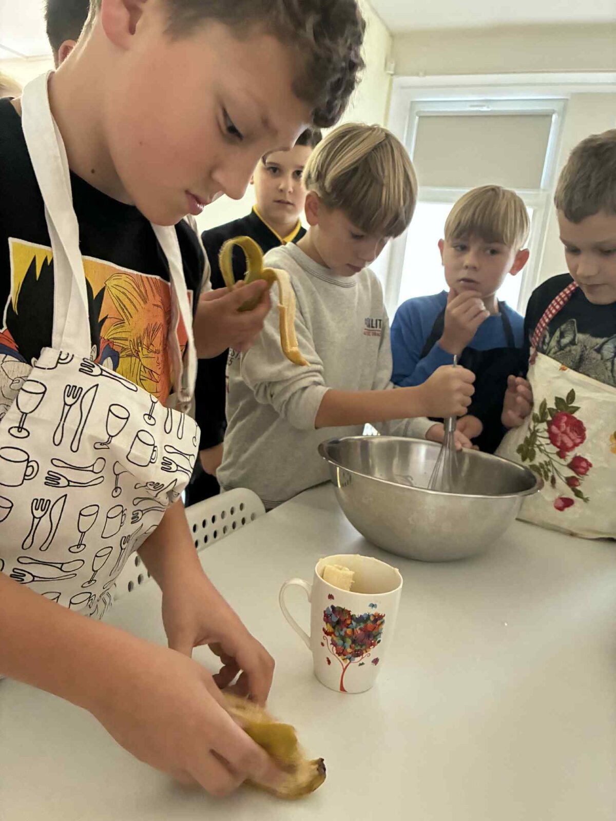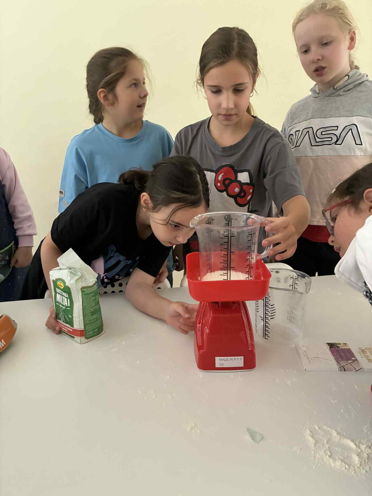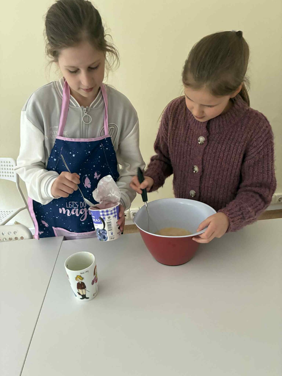 Mokiniai pasiskirstė komandomis ir atliko skirtingas užduotis: vieni ieškojo tinkamiausio recepto, kiti matavo ingredientų kiekius, skaičiavo proporcijas ir aiškinosi, kodėl tikslumas svarbus kepant. Ant stalų netrukus atsirado miltai, cukrus, kiaušiniai, sviestas ir šokolado gabalėliai.