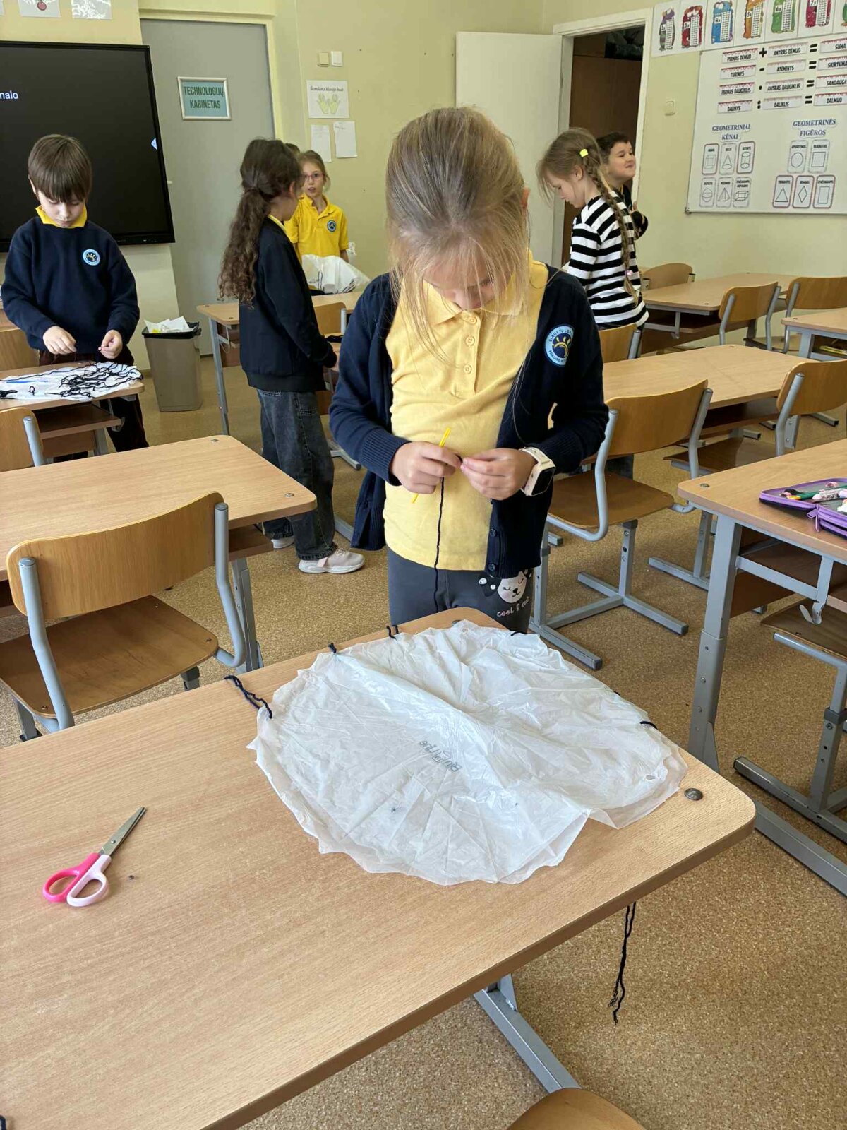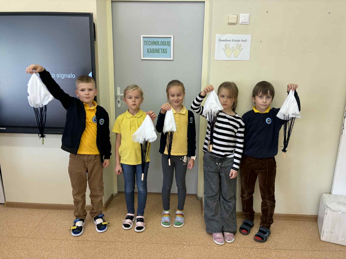 Šią savaitę pradinių klasių STEAM STAR būrelio mokiniai atliko praktinį tyrimą - gamino ir bandė parašiutus. Užsiėmimo metu vaikai patys kūrė parašiutus iš įvairių medžiagų, spėliojo, kuris leisis lėčiausiai, ir stebėjo, kaip oro pasipriešinimas daro įtaką kritimo greičiui.
