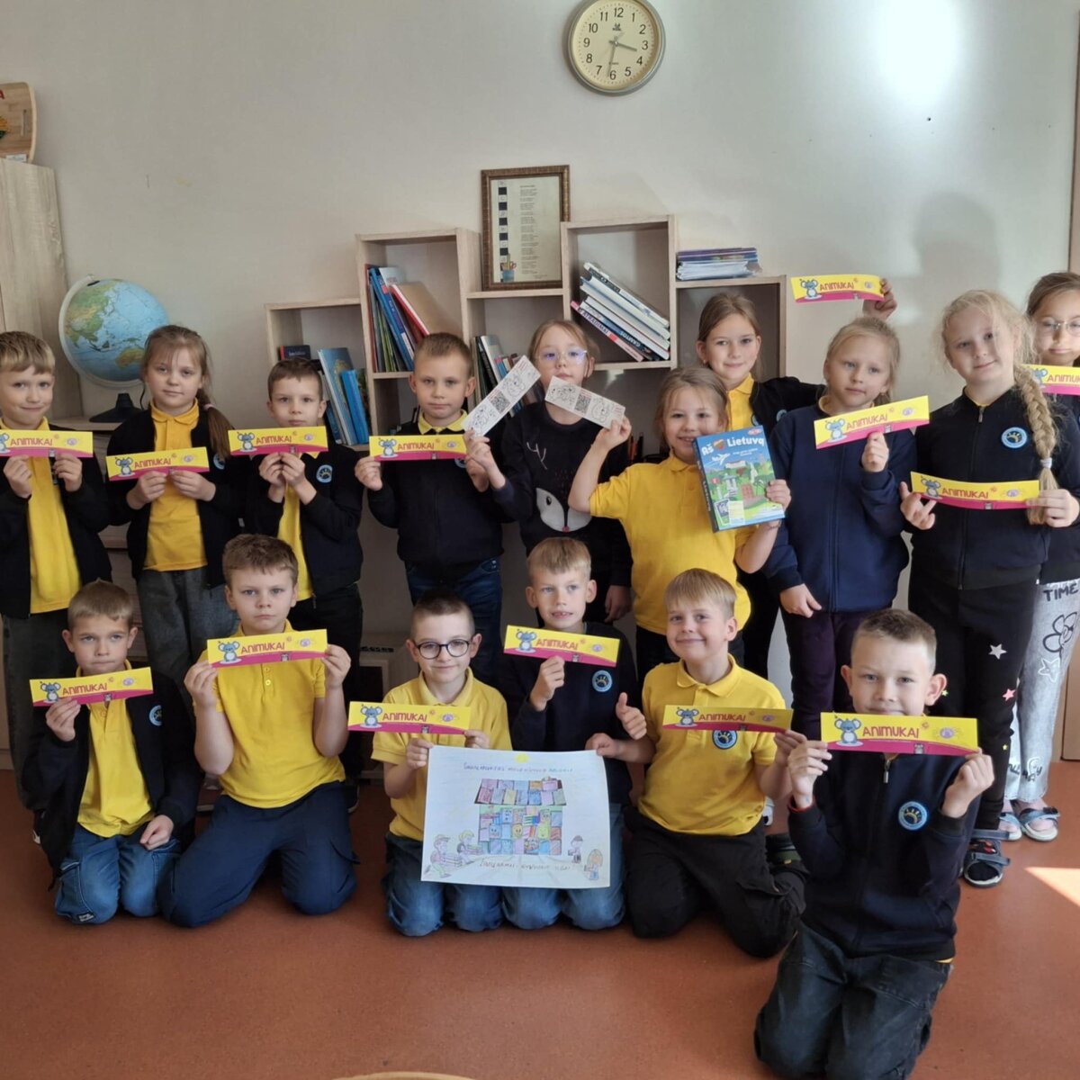 Už nuoširdžias pastangas vaikai buvo apdovanoti žaidimu „Aš myliu Lietuvą“ bei knygų skirtukais. Džiaugiamės bibliotekos jubiliejumi ir dėkojame už parodytą dėmesį bei įvertinimą.