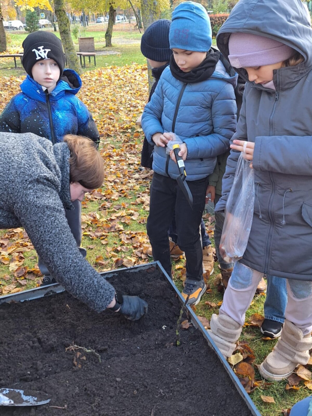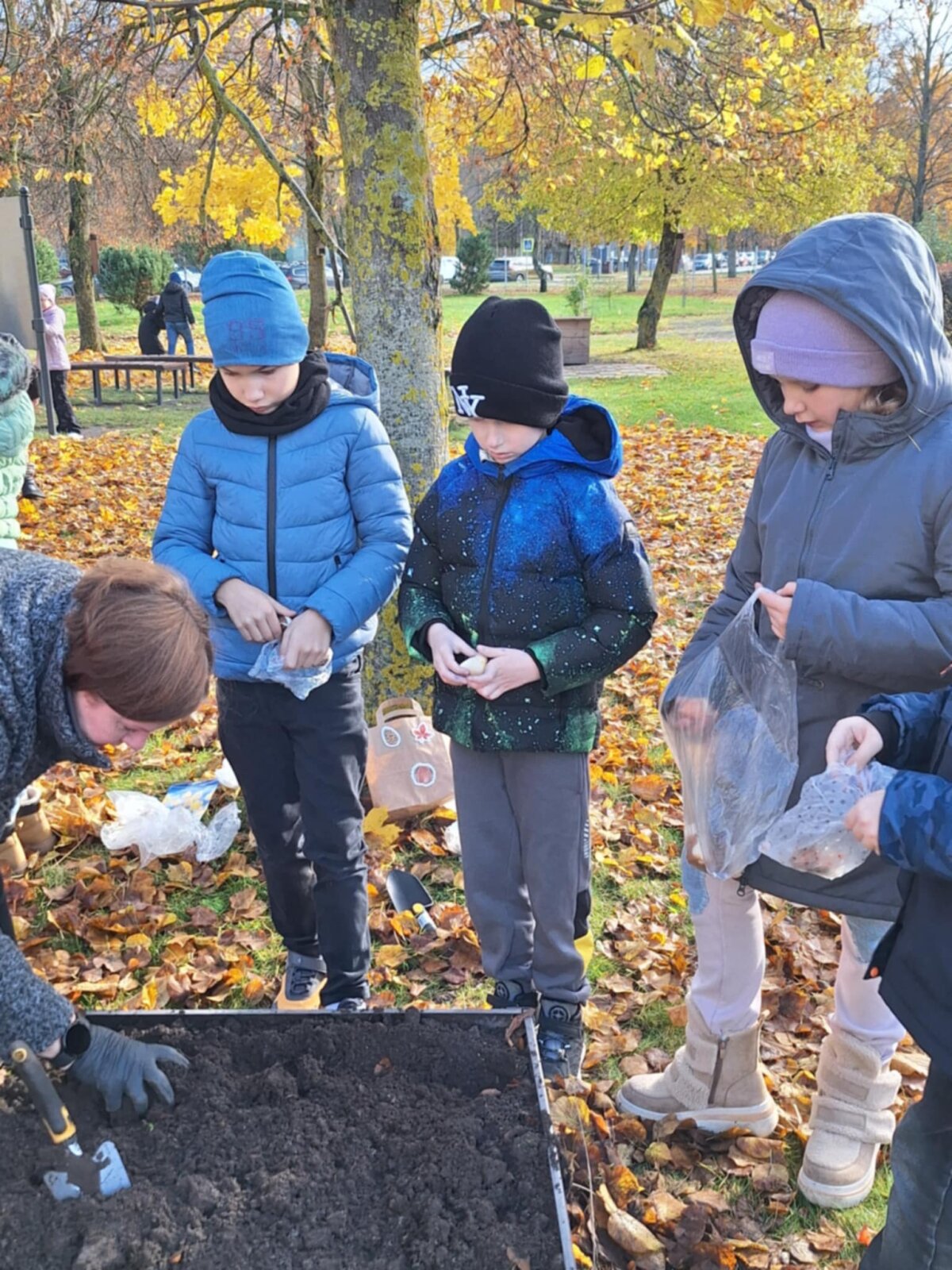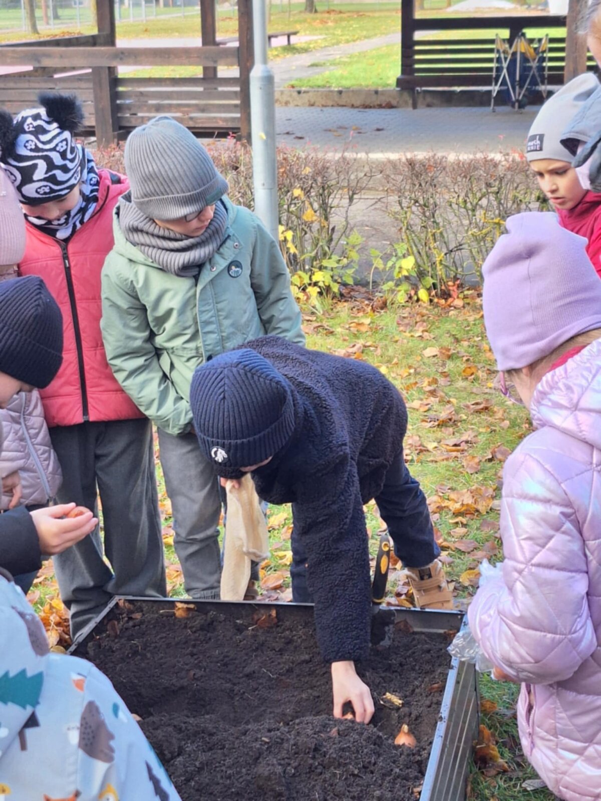 Mokiniai dirbo draugiškai ir atsakingai: vieni kasė duobutes, kiti dėjo tulpių svogūnėlius, o treti kruopščiai užpylė juos žemėmis. Ši veikla ne tik praturtino mokinius nauja patirtimi, bet ir ugdė atsakomybę bei rūpestį aplinka.