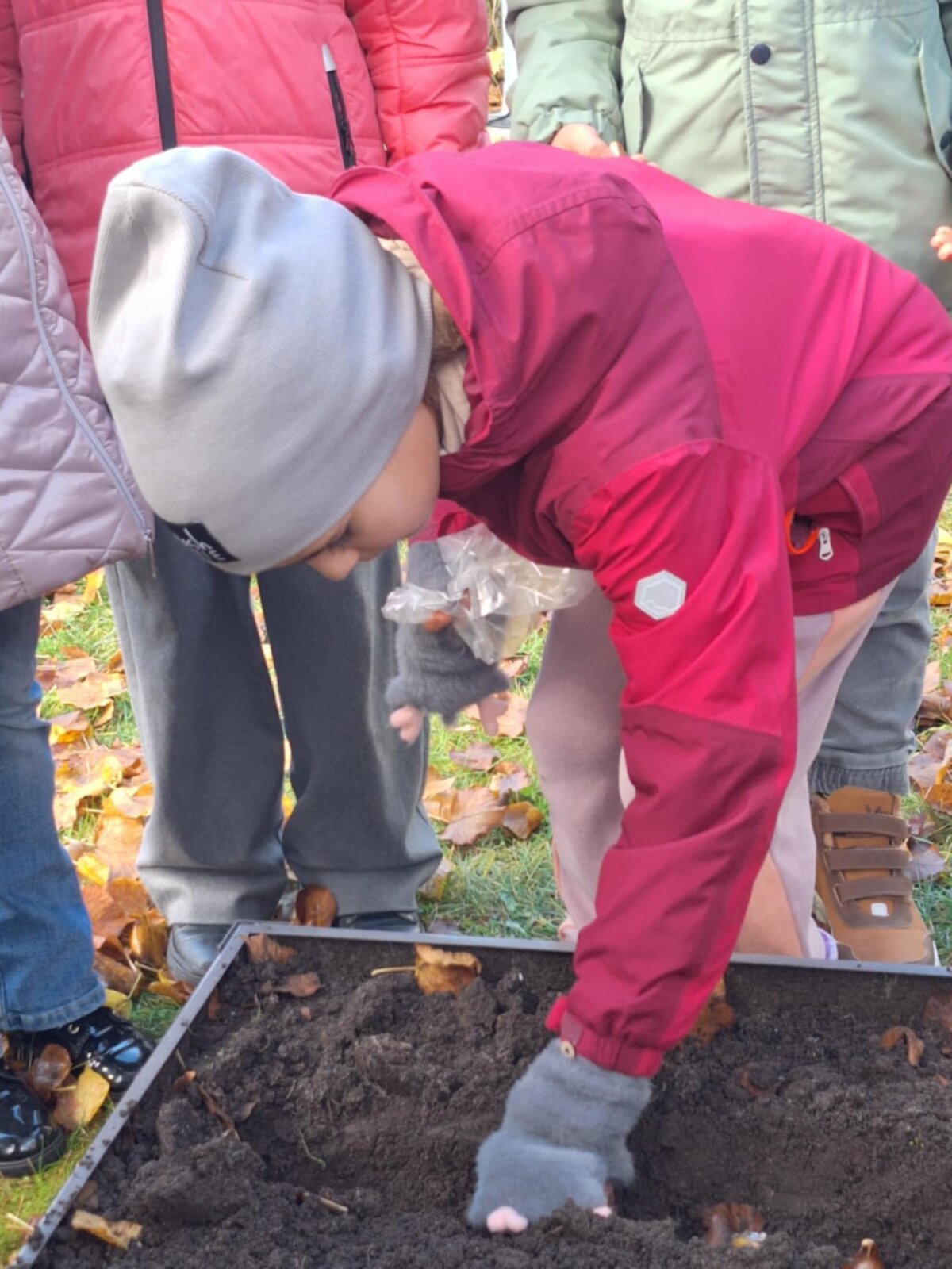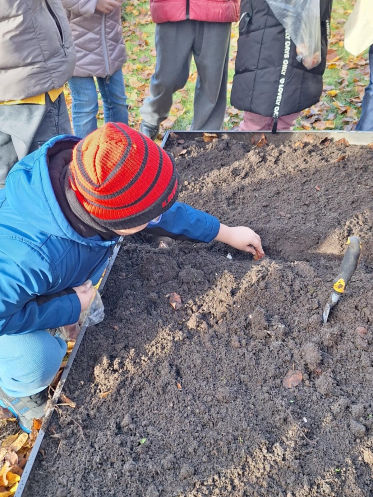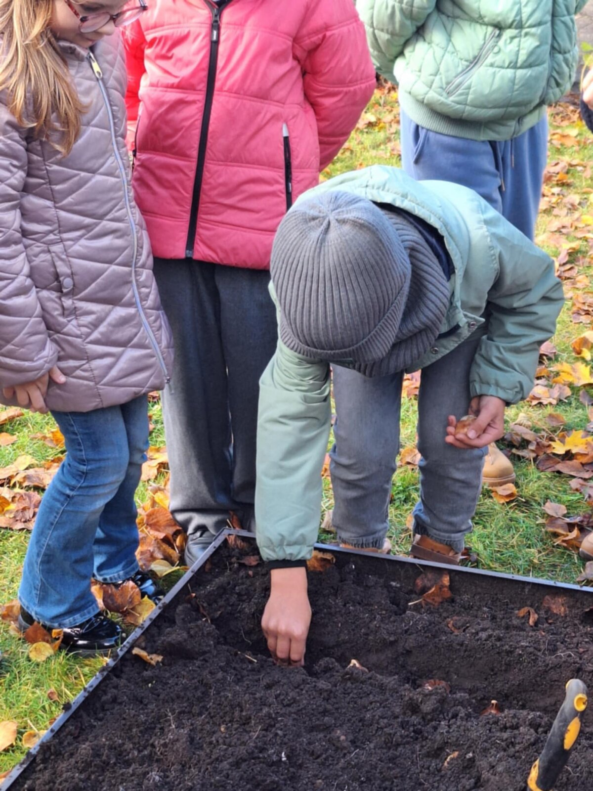 Mokiniai dirbo draugiškai ir atsakingai: vieni kasė duobutes, kiti dėjo tulpių svogūnėlius, o treti kruopščiai užpylė juos žemėmis. Ši veikla ne tik praturtino mokinius nauja patirtimi, bet ir ugdė atsakomybę bei rūpestį aplinka.