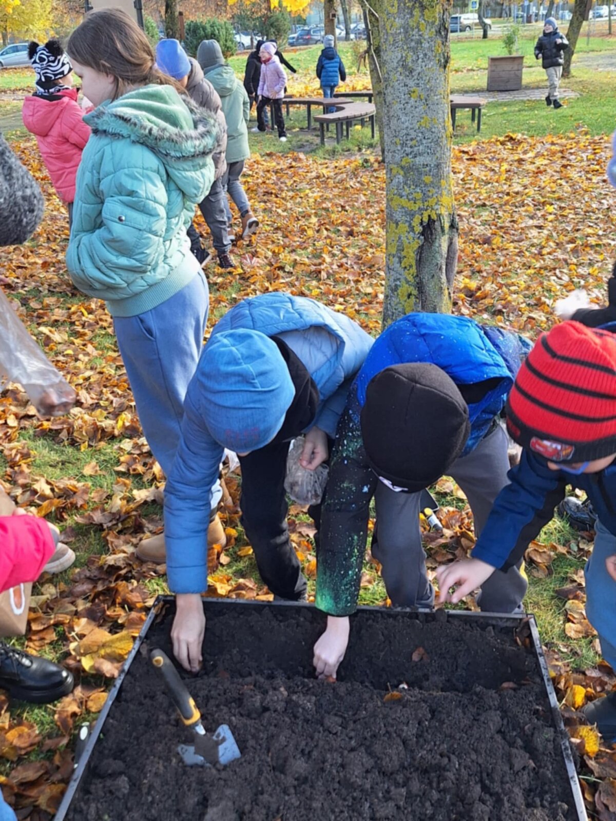 Pavasarį, kai sužydės pirmosios tulpės, mokiniai galės pasidžiaugti savo darbo rezultatu ir prisiminti, kad graži aplinka prasideda nuo mažų, bet prasmingų darbų.