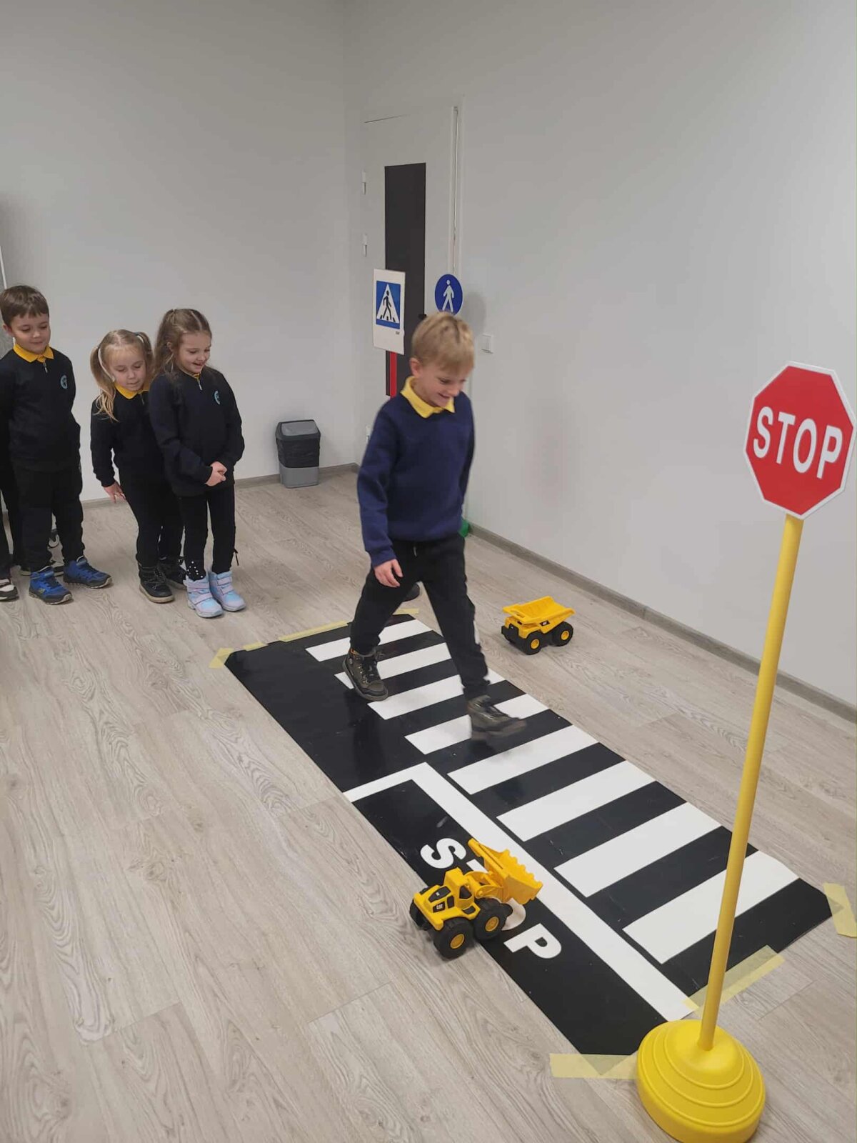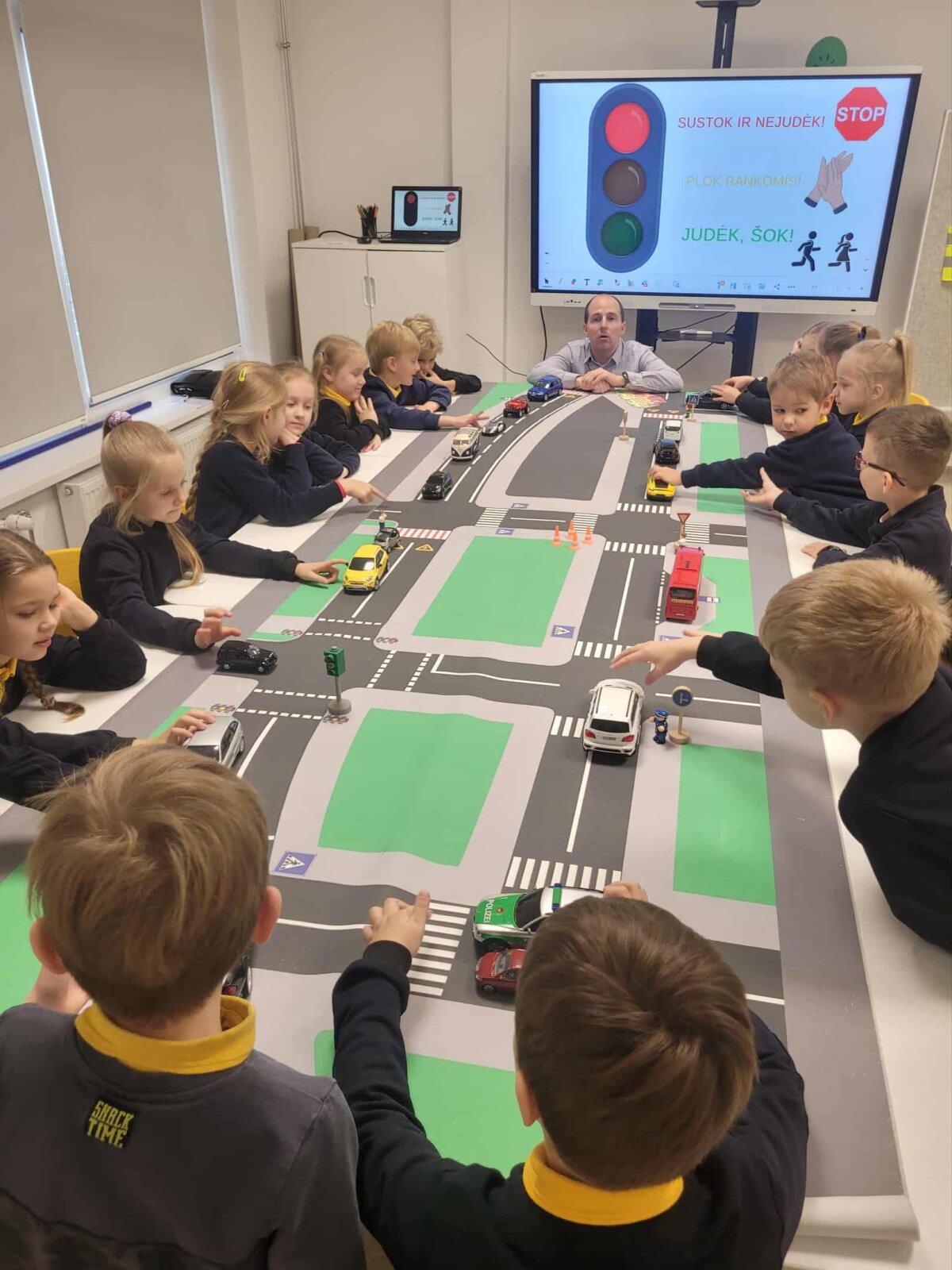 Edukacijos metu mokiniai buvo supažindinti su Kelių eismo taisyklėmis, mokėsi atpažinti eismo aplinkoje galinčius kilti pavojus, aptarė, kaip jų išvengti. Vaikai aktyviai dalyvavo veiklose, stebėjo, analizavo ir įtvirtino įgytas žinias praktinėse situacijose.