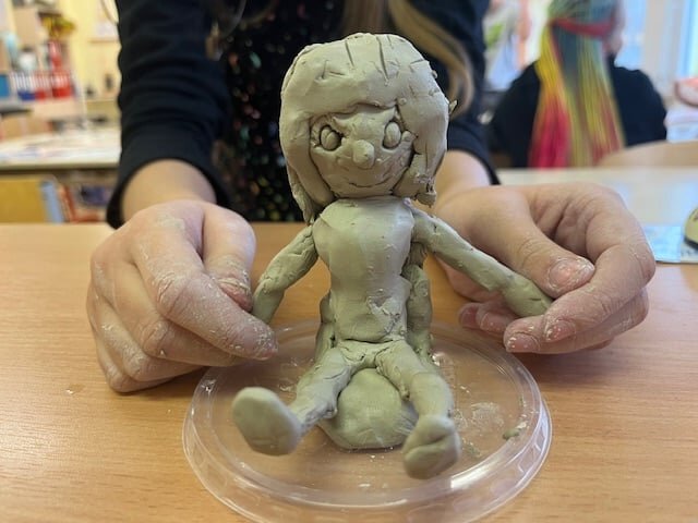 Mokiniai susipažino su skulptūros sąvoka, molio savybėmis ir darbo įrankiais. Praktinėje veikloje kūrė skulptūras iš molio, tyrinėjo formas, proporcijas ir ieškojo būdų, kaip išlaikyti kūrinių stabilumą. Užsiėmimo pabaigoje pristatė savo darbus, aptarė kūrybos procesą ir džiaugėsi rezultatais.