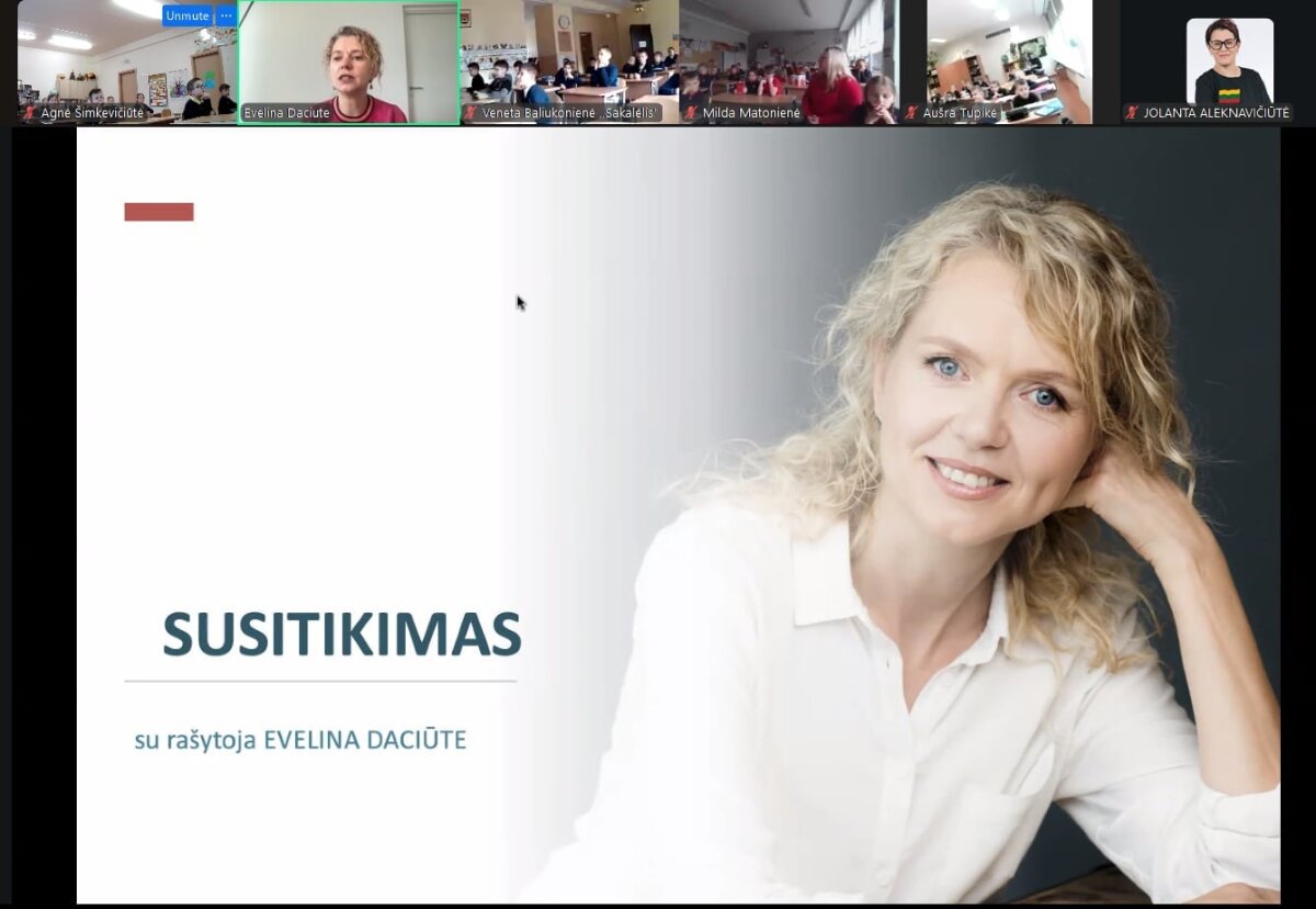 Lapkričio 13 dieną IV VDM grupės mokiniai dalyvavo virtualiame susitikime su rašytoja Evelina Daciūte. Autorė pristatė savo kūrybos kelią, pasakojo apie knygų atsiradimo procesą, dalijosi įžvalgomis apie poeziją ir jos svarbą jaunajam skaitytojui.