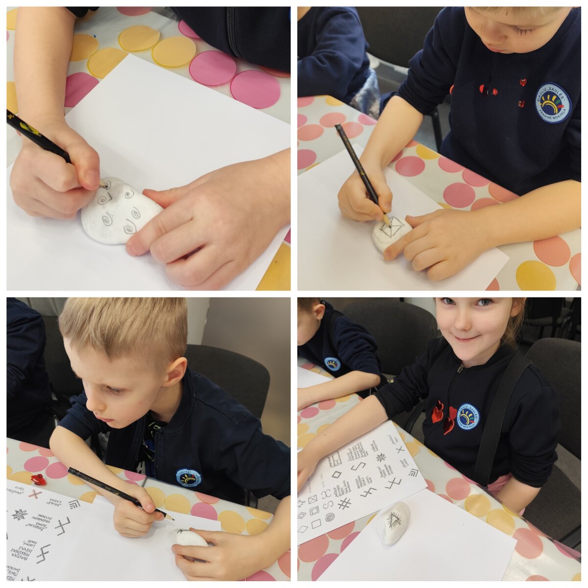 Edukacinio užsiėmimo metu PUG1 ugdytiniai sužinojo apie baltų simbolius ir jų reikšmes. Praktinėje veiklos dalyje vaikai kūrė savo sėkmės amuletą iš akmens – dekoravo akmenukus baltiškais raštais ir simboliais, taip įtvirtindami įgytas žinias bei lavindami kūrybiškumą, smulkiąją motoriką ir estetinį suvokimą.