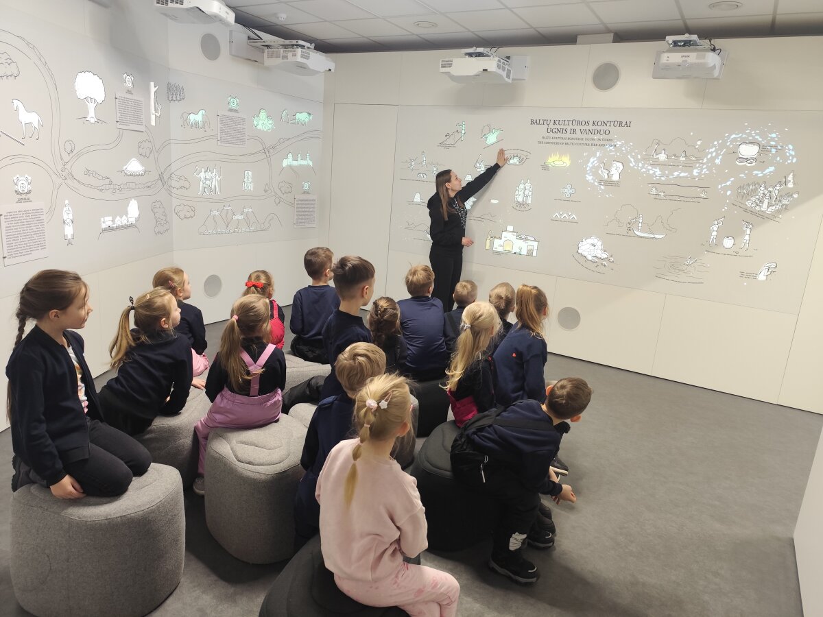 Centro erdvėse vaikai susipažino su senovės baltų gyvenimu, buities daiktais, amatais ir simboliais. Interaktyvūs žaidimai leido mažiesiems lankytojams aktyviai įsitraukti į pažinimo procesą: jie galėjo pamatyti, kaip atrodytų tapę senovės baltų bendruomenės nariais, mokėsi atpažinti buityje naudotus daiktus, stebėjo pristatomas baltų genčių gyvenimo ypatybes. Šiuolaikinių technologijų pagalba pateikta informacija vaikams buvo suprantama ir patraukli.
