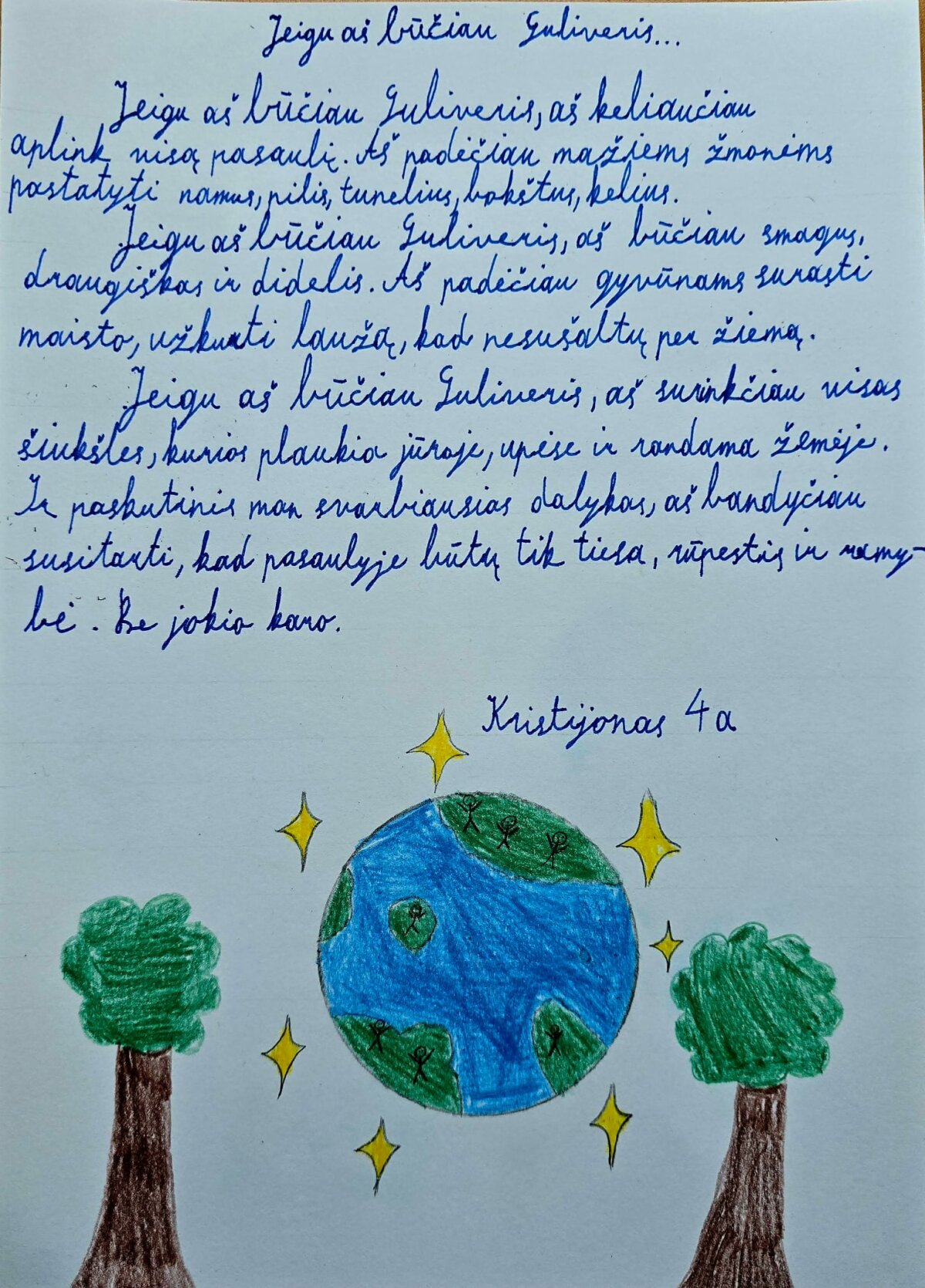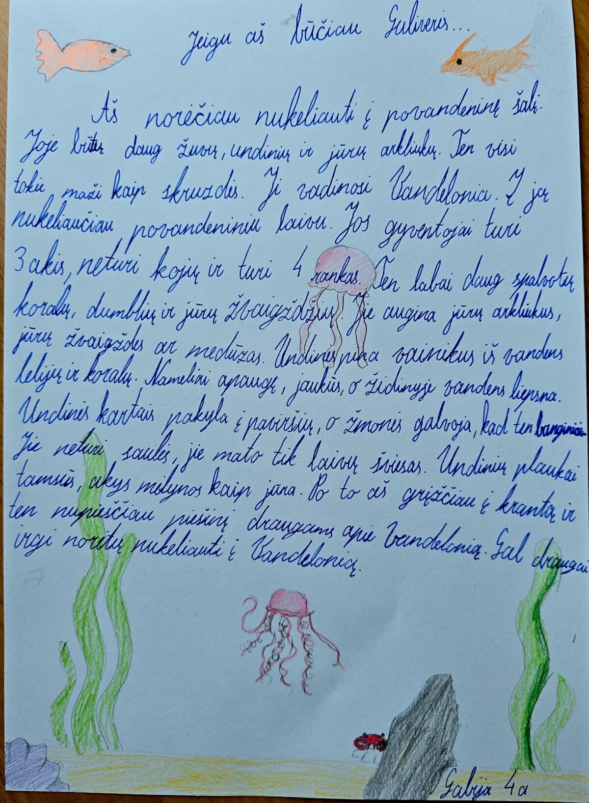 Šiemet minimos 300-osios Jonathano Swifto kultinio kūrinio „Guliverio kelionės“ metinės. Šia proga 4-ųjų klasių mokiniai buvo pakviesti į įspūdingą kelionę, kurios jie niekada nesulauktų nei automobiliu, nei lėktuvu, nei laivu.