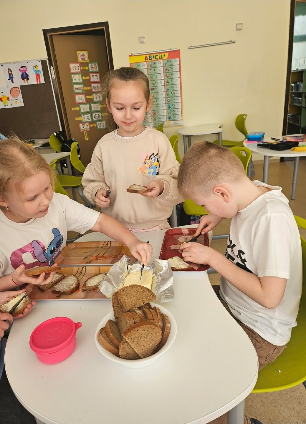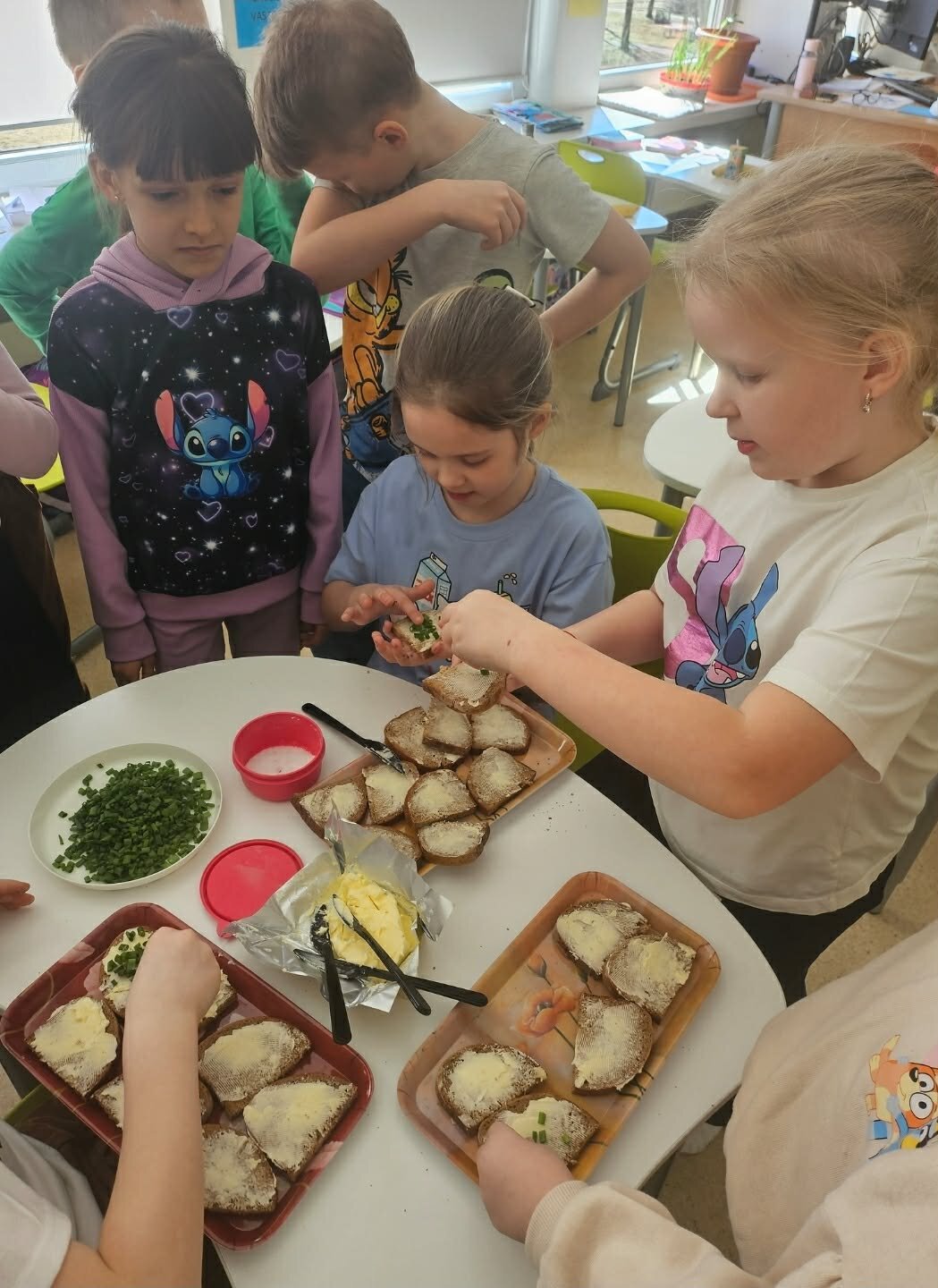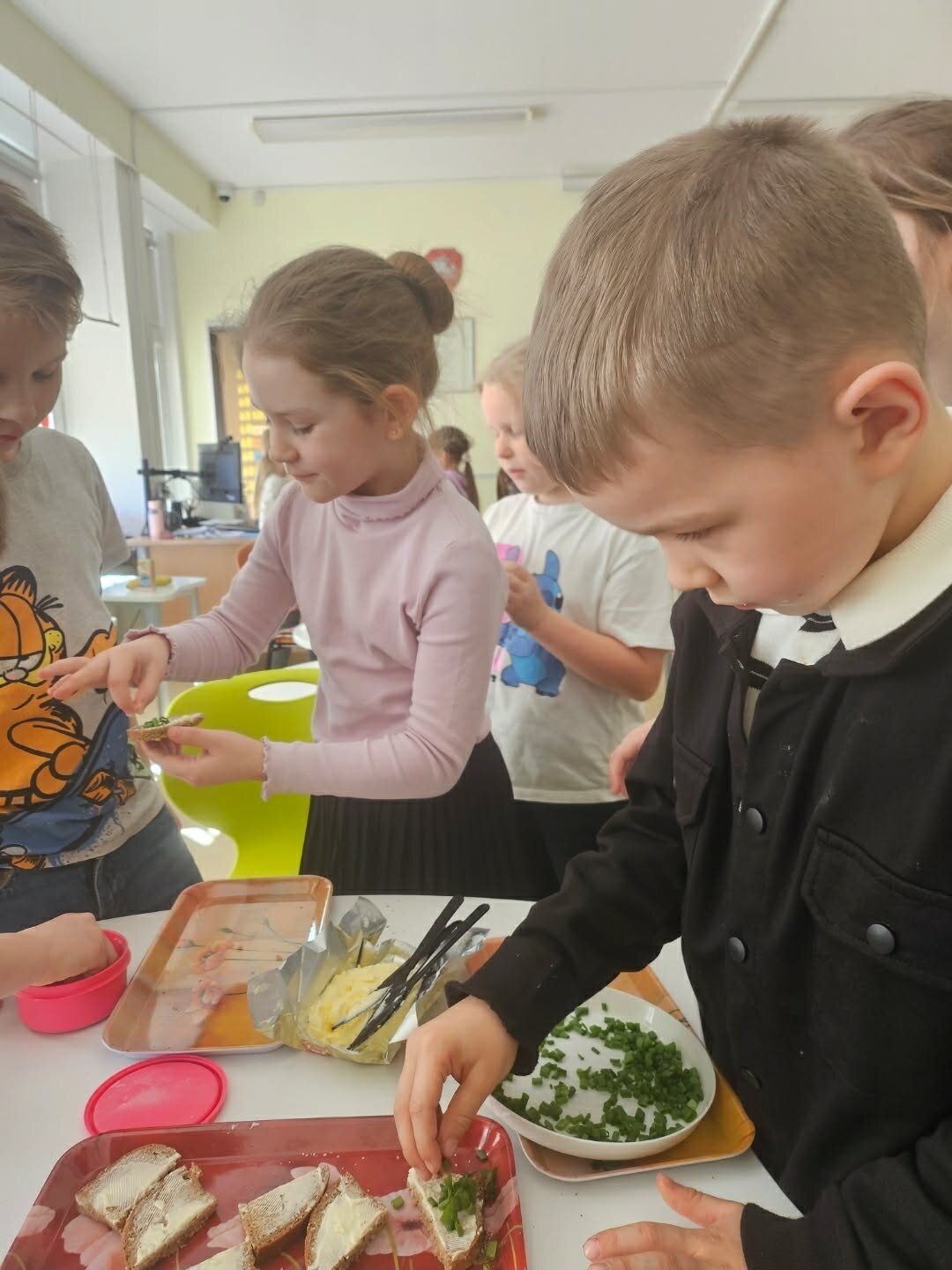Užaugintas derlius buvo panaudotas praktiškai. Mokiniai gamino sveikuoliškus sumuštinius: pjaustė duoną, tepė sviestą ir gardino savo užaugintais žalumynais. Taip pat ragavo šviežius agurkus, kuriuos patys užaugino. Vaikai ne tik patys mėgavosi rezultatais, bet ir vaišino kitus bendruomenės narius.