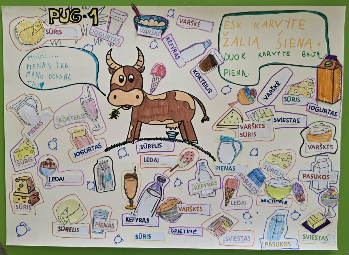Į veiklas aktyviai įsitraukė ir priešmokyklinio ugdymo grupės (PUG) mokiniai. Jie pristatė savo „tyrimų“ rezultatus apie pieno produktų įvairovę ir tai, kuo gali virsti pienas.