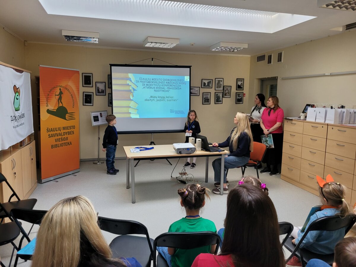 PUG-2 grupės ugdytiniai dalyvavo Šiaulių miesto ikimokyklinio ir priešmokyklinio amžiaus vaikų ir mokytojų konferencijoje „Atvėrus knygą – prasideda nuotykiai“. Konferenciją organizavo Šiaulių lopšelis-darželis „Pupų pėdas“ kartu su Šiaulių miesto savivaldybės viešosios bibliotekos „Aido“ filialu.