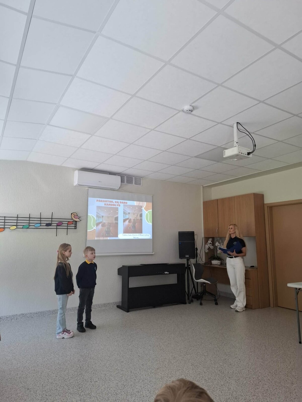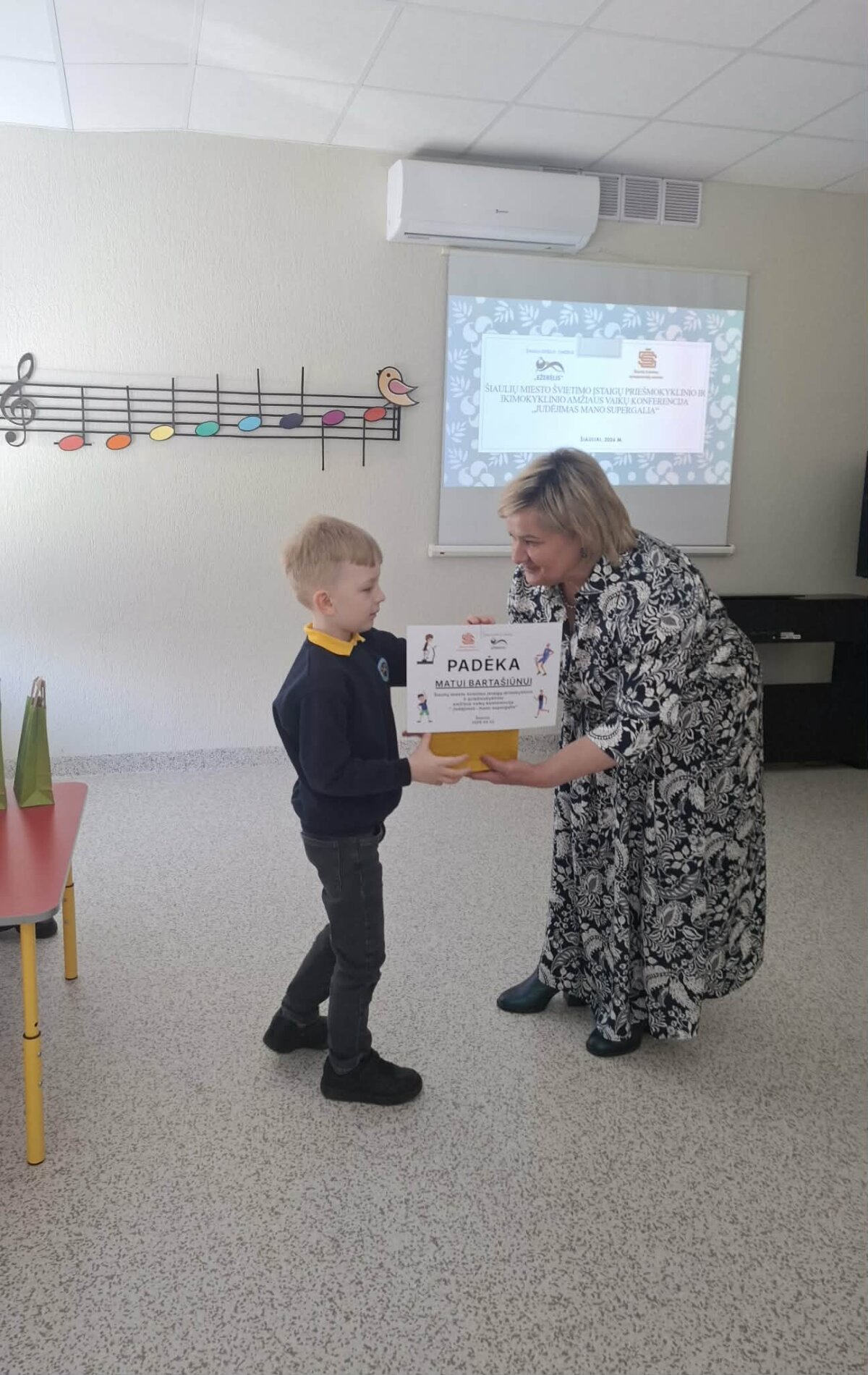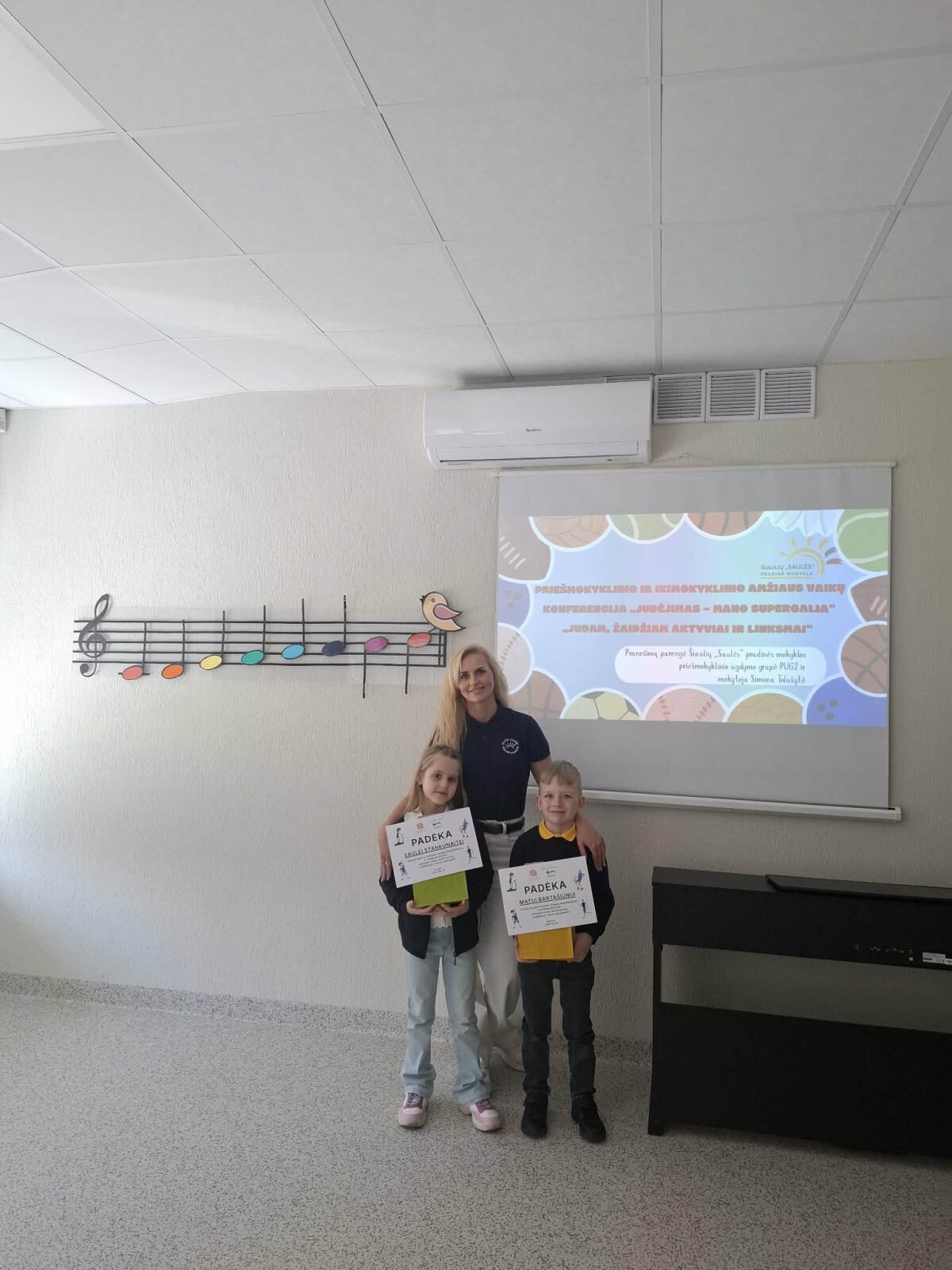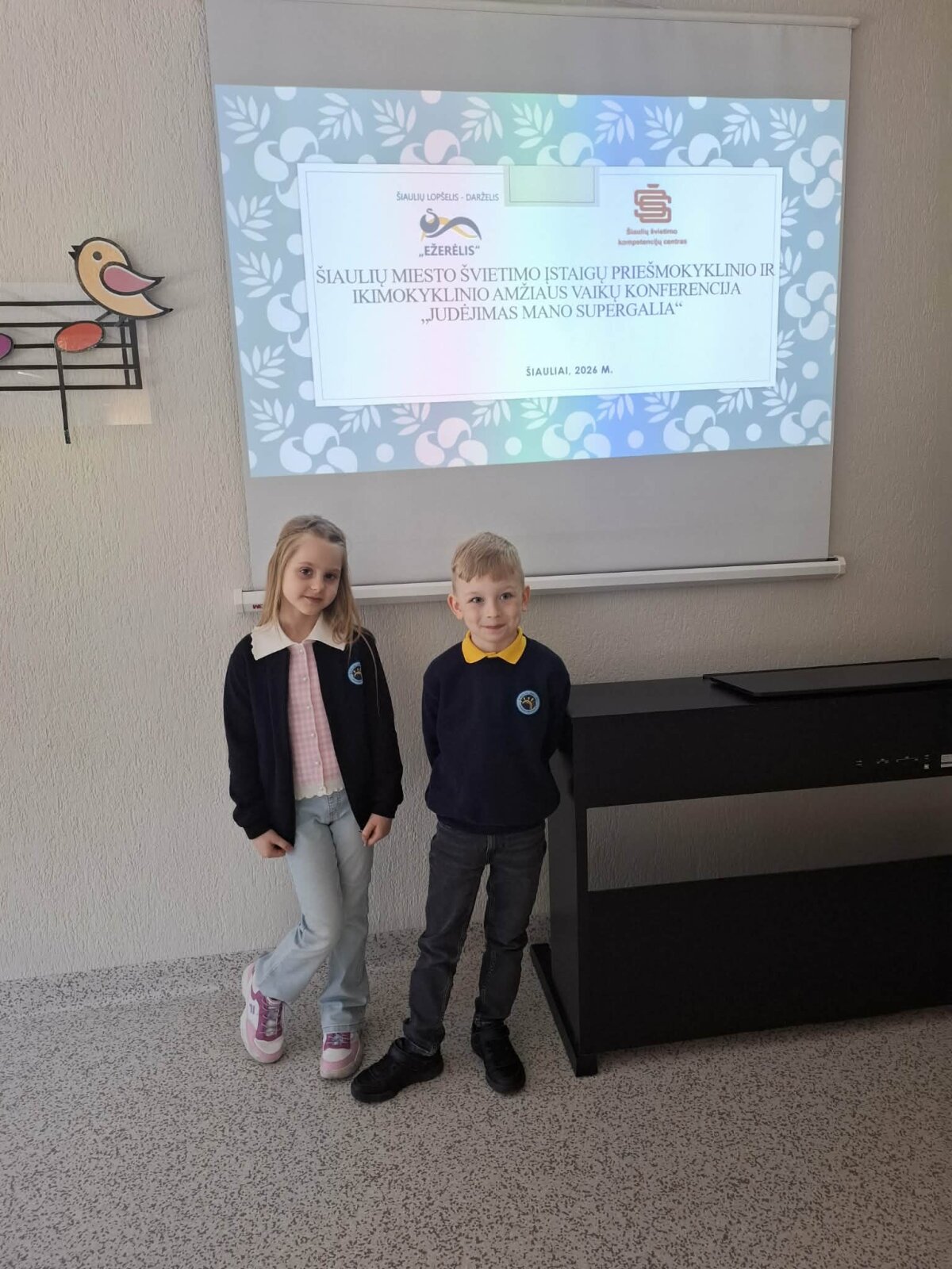 Matas Bartašiūnas ir Saulė Stankūnaitė pristatė pranešimą „Judam, žaidžiam aktyviai ir linksmai“. Vaikus konferencijai parengė mokytoja Simona Tolušytė.
