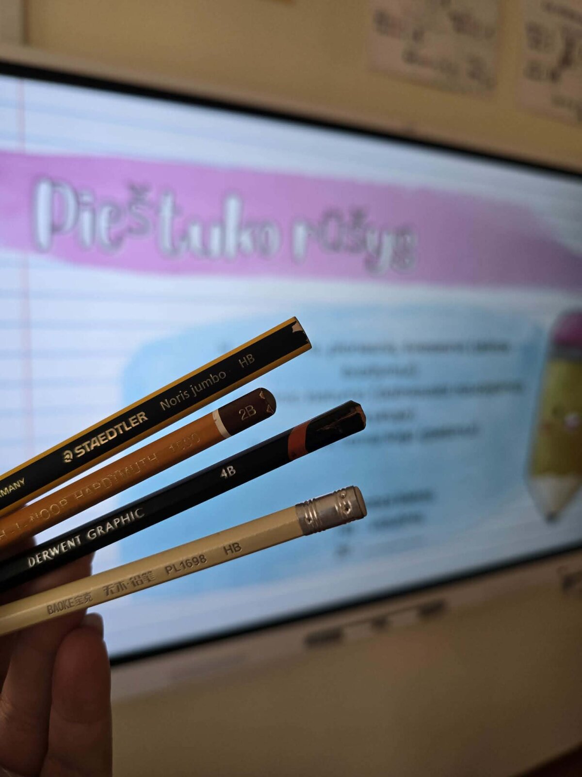 Pamokų metu mokiniai analizavo pieštuko sandarą, susipažino su jo atsiradimo istorija ir raidos etapais. Praktinių veiklų metu jie išbandė skirtingų tipų pieštukus (H, HB ir B), stebėjo jų paliekamų linijų skirtumus, tyrinėjo pieštukų minkštumo įtaką piešimui bei rašymui.