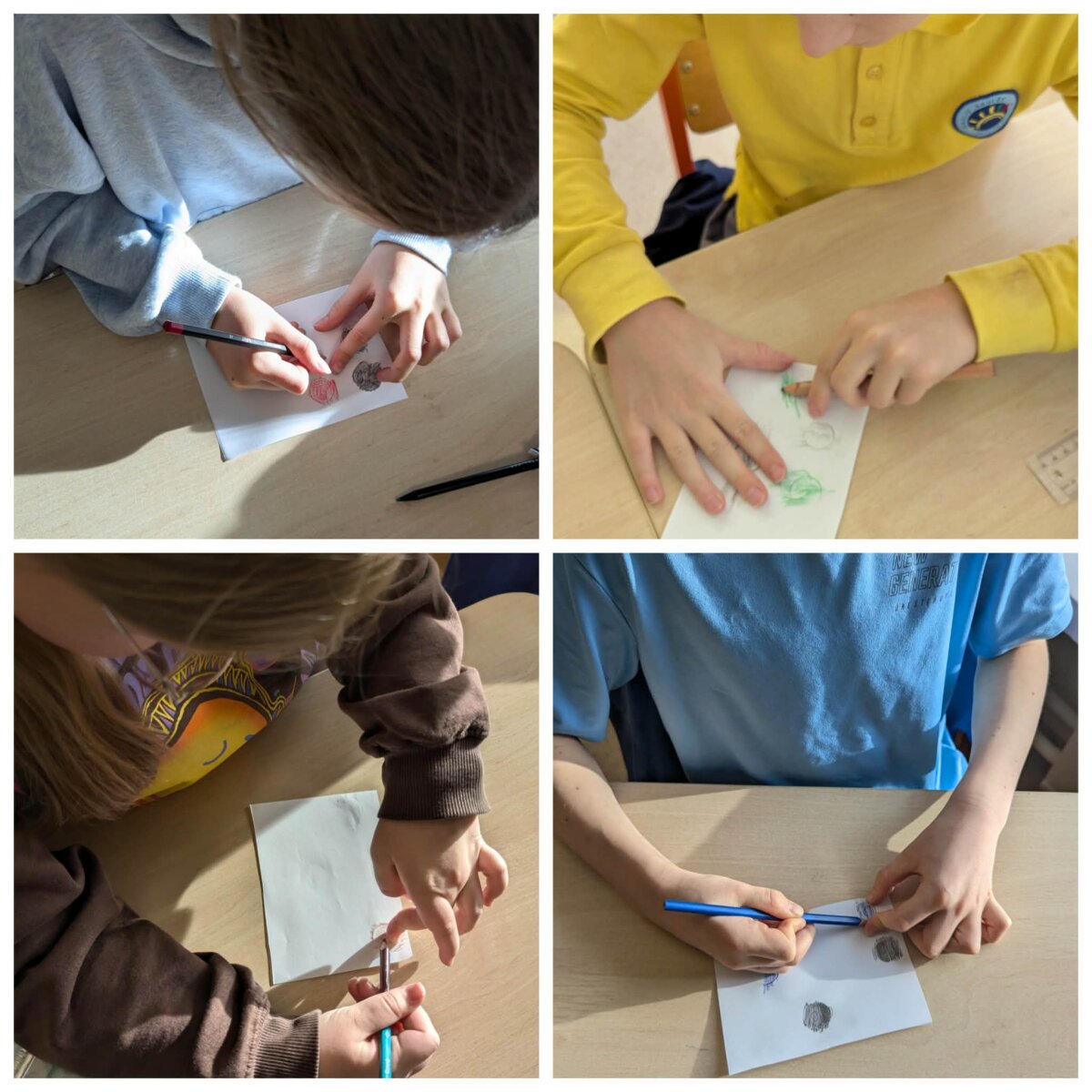 Atlikdami kūrybines užduotis, mokiniai taikė įvairius šešėliavimo būdus, o naudodami pieštukus darė monetų antspaudus. Šios veiklos padėjo ugdyti smulkiąją motoriką, pastabumą ir kūrybiškumą.