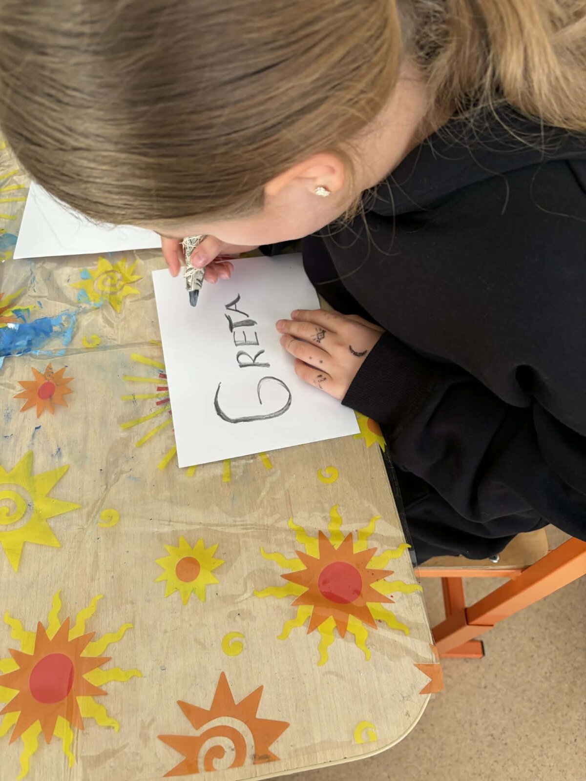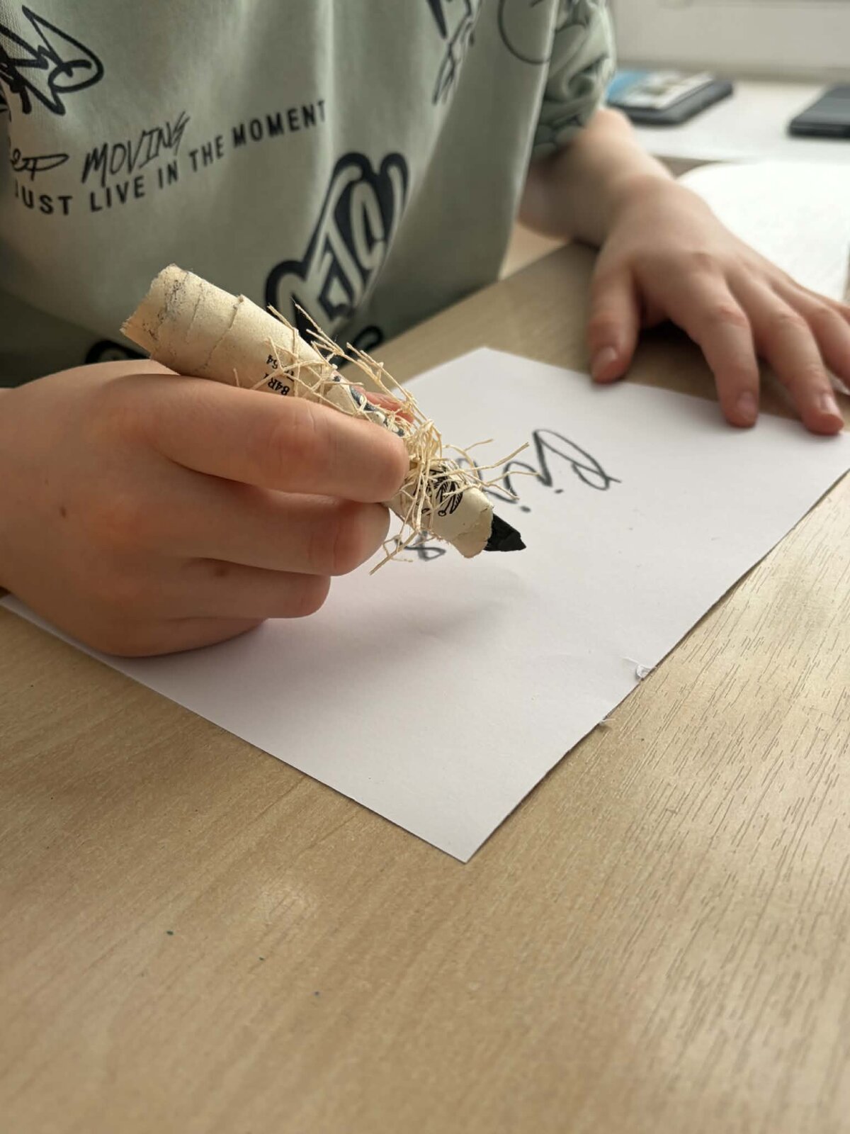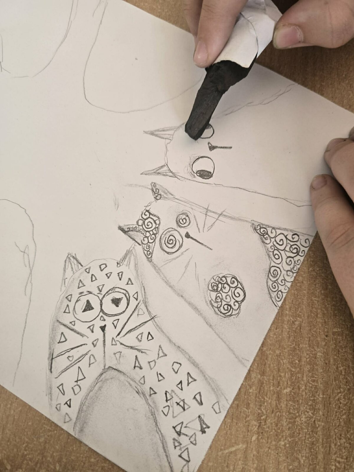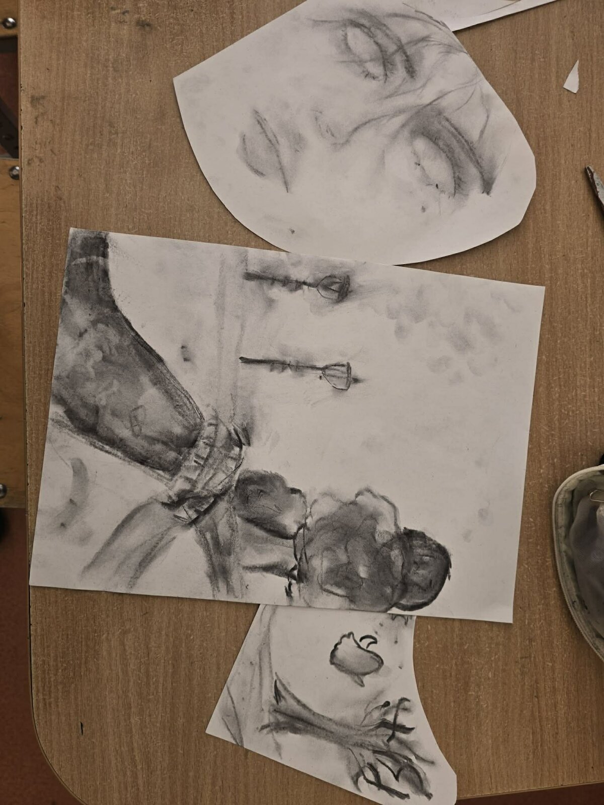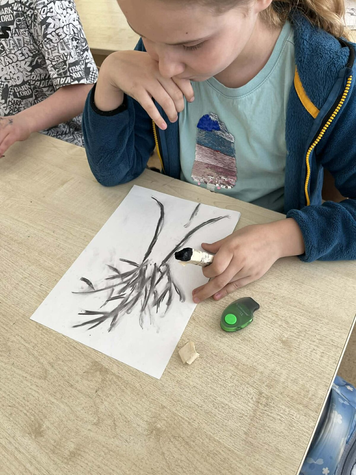 Mokiniai nusprendė patys išbandyti kūrybinį procesą, naudodami anglies ir senų knygų lapus. Jie sukūrė savo pieštukus ir vėliau piešė su anglimi, taip gilindami savo žinias apie medžiagas ir jų panaudojimą.