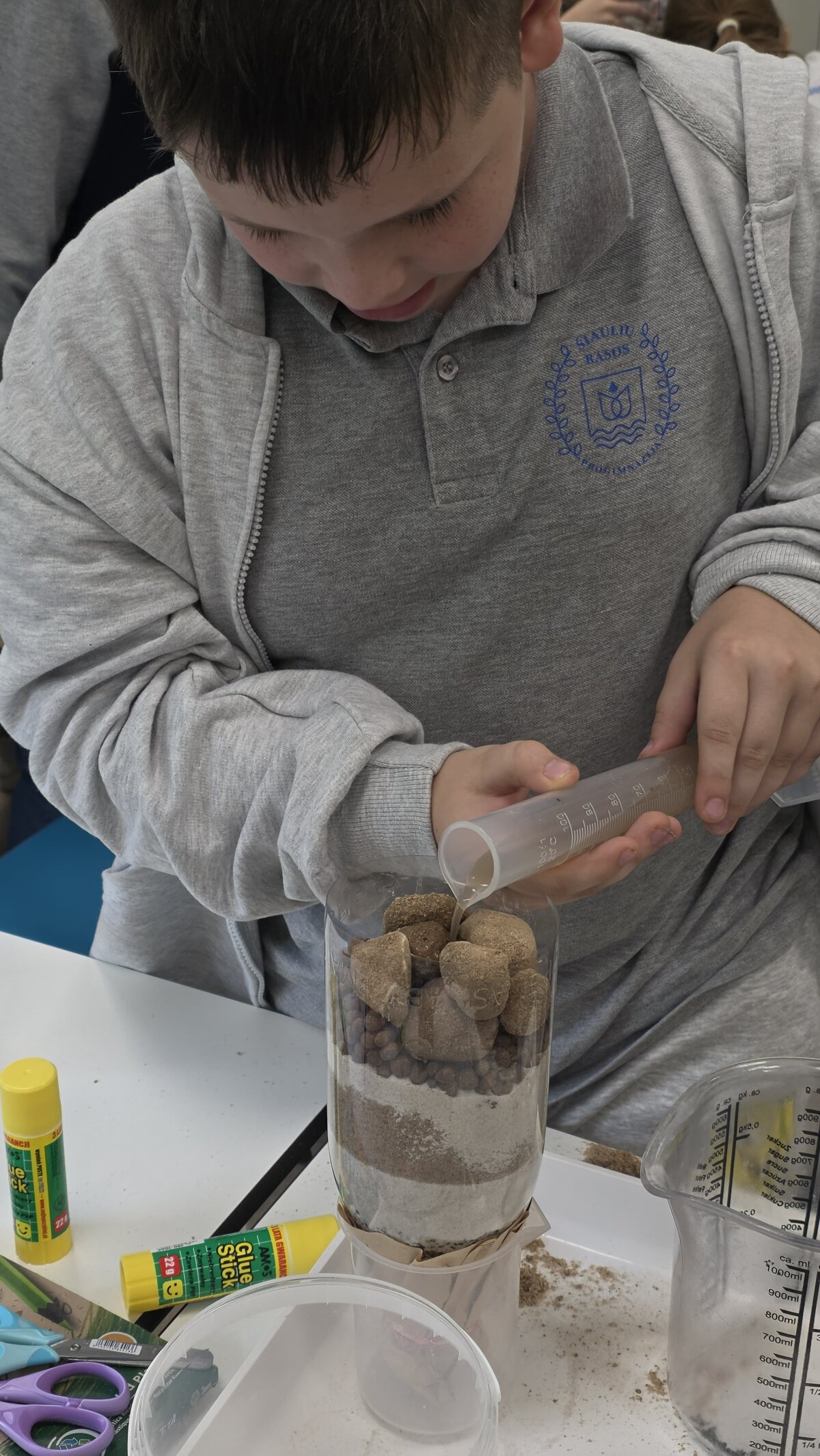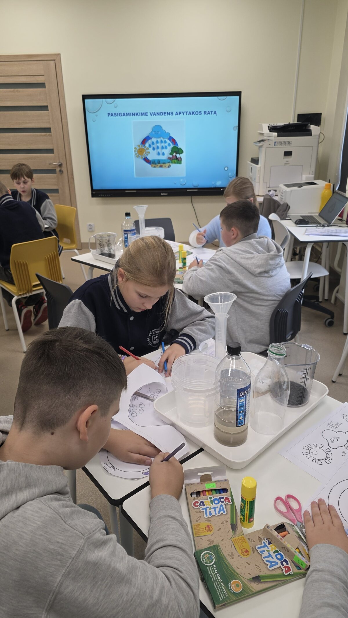 Mokiniai gebėjo paaiškinti, kaip vyksta vandens apytaka gamtoje, atpažinti vandens taršos šaltinius ir pasiūlyti būdus, kaip vandenį galima išvalyti natūraliais būdais.