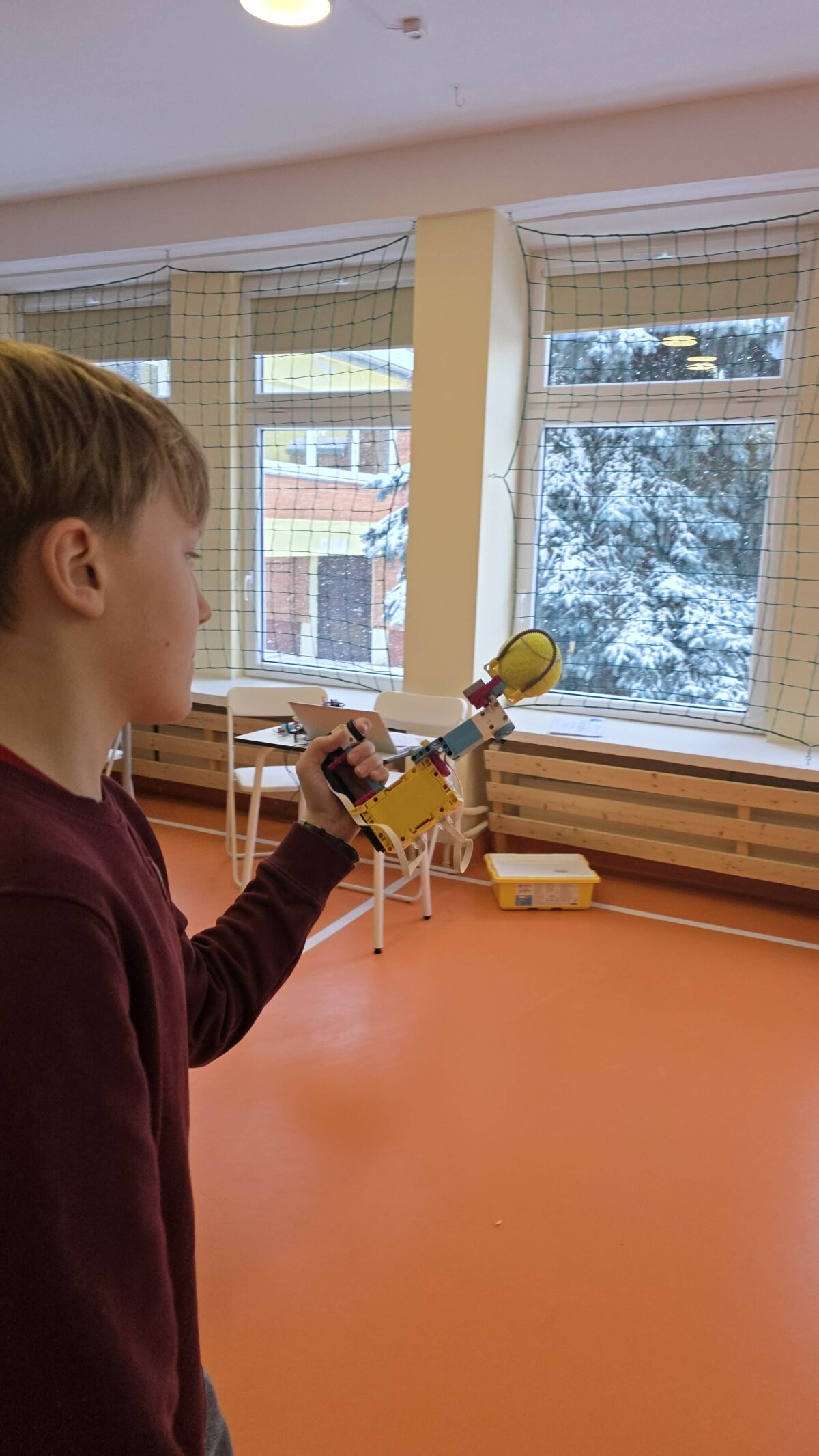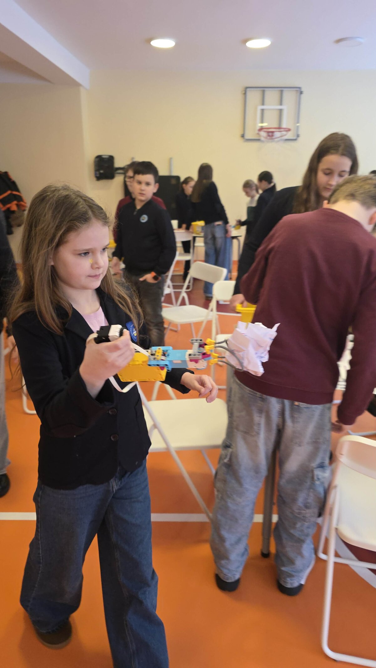 Antrojoje užduotyje komandos dirbo su VEX GO robotais. Mokiniai kūrė robotų griebimo mechanizmus, leidžiančius per ribotą laiką kuo daugiau kubelių pervežti į savo komandos zoną. Šioje užduotyje buvo svarbus ne tik pats mechanizmas, bet ir roboto judėjimo tikslumas, krypties valdymas bei sklandus komandos narių tarpusavio bendradarbiavimas.