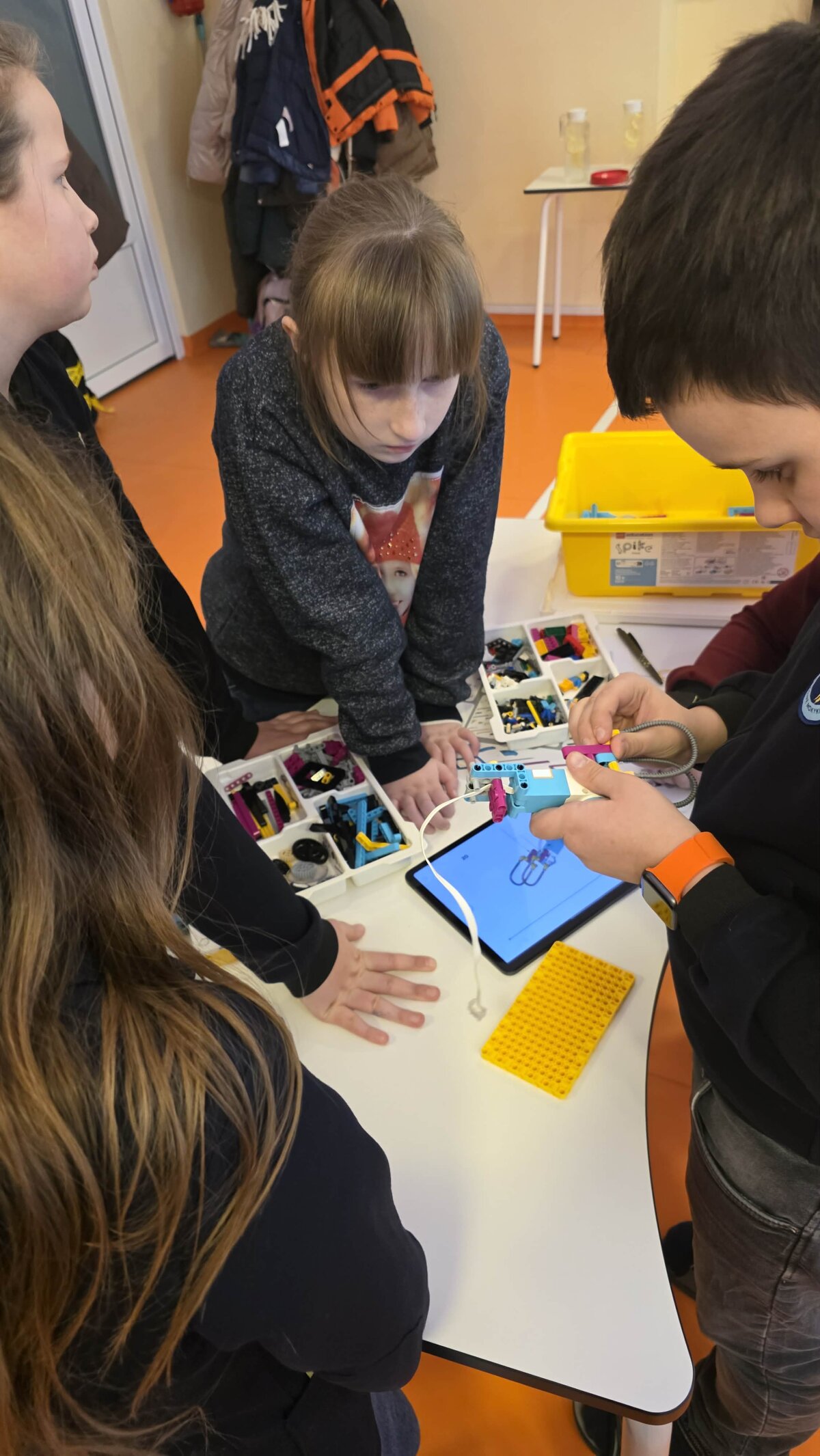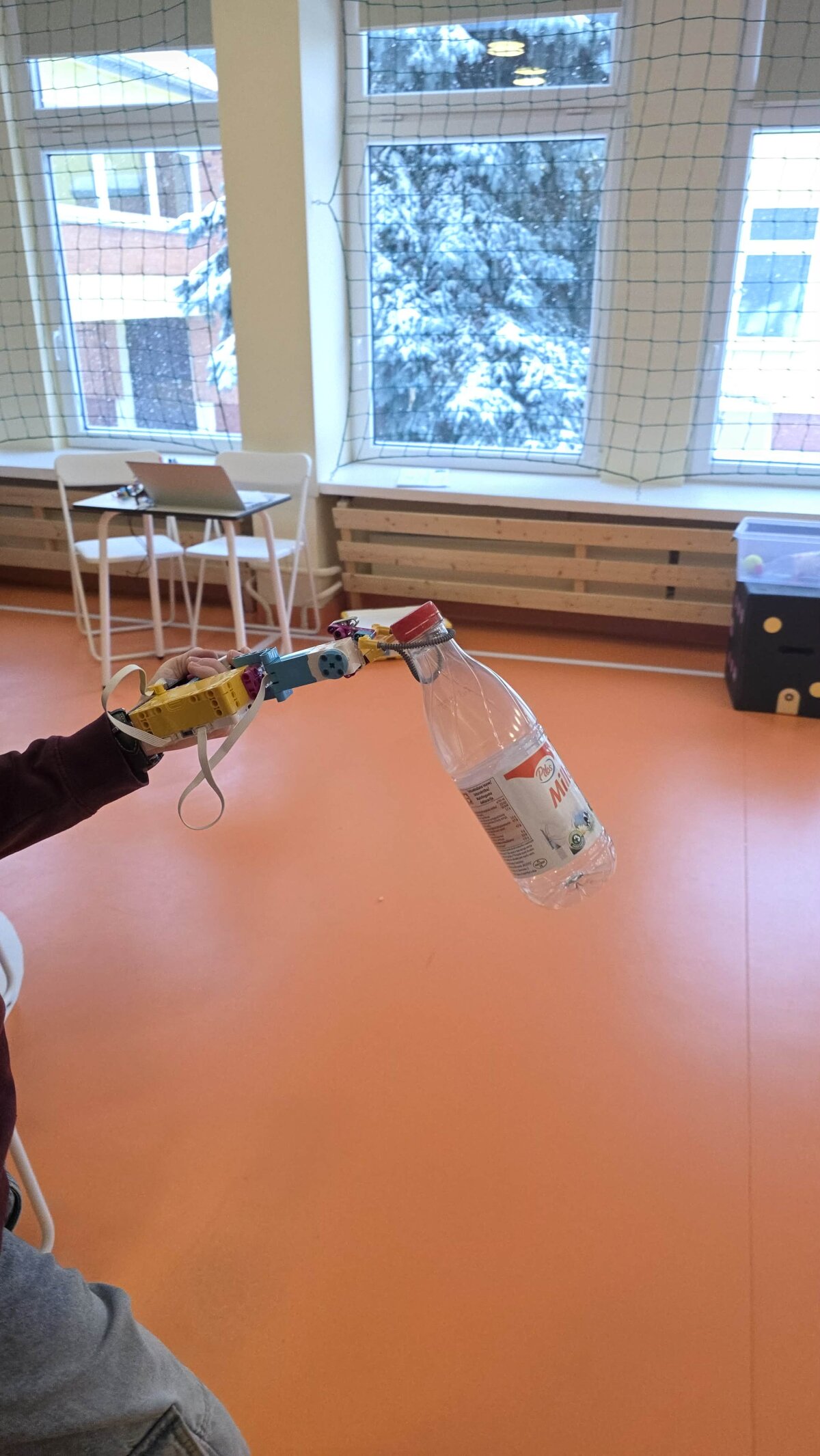 Pirmojoje konkurso užduotyje komandos dirbo su LEGO SPIKE Prime konstrukcijų modeliais. Mokiniai konstravo du veikiančius griebtuvus, pritaikytus skirtingų savybių objektams perkelti. Atliekant užduotį reikėjo užtikrinti, kad sukurti griebtuvai patikimai suimtų ir perneštų popierių, butelį bei kamuoliuką. Ši veikla reikalavo įvertinti objektų formą, svorį ir stabilumą, nuosekliai bandyti įvairius sprendimus bei koreguoti konstrukcijas, kol buvo pasiektas veikiantis rezultatas.