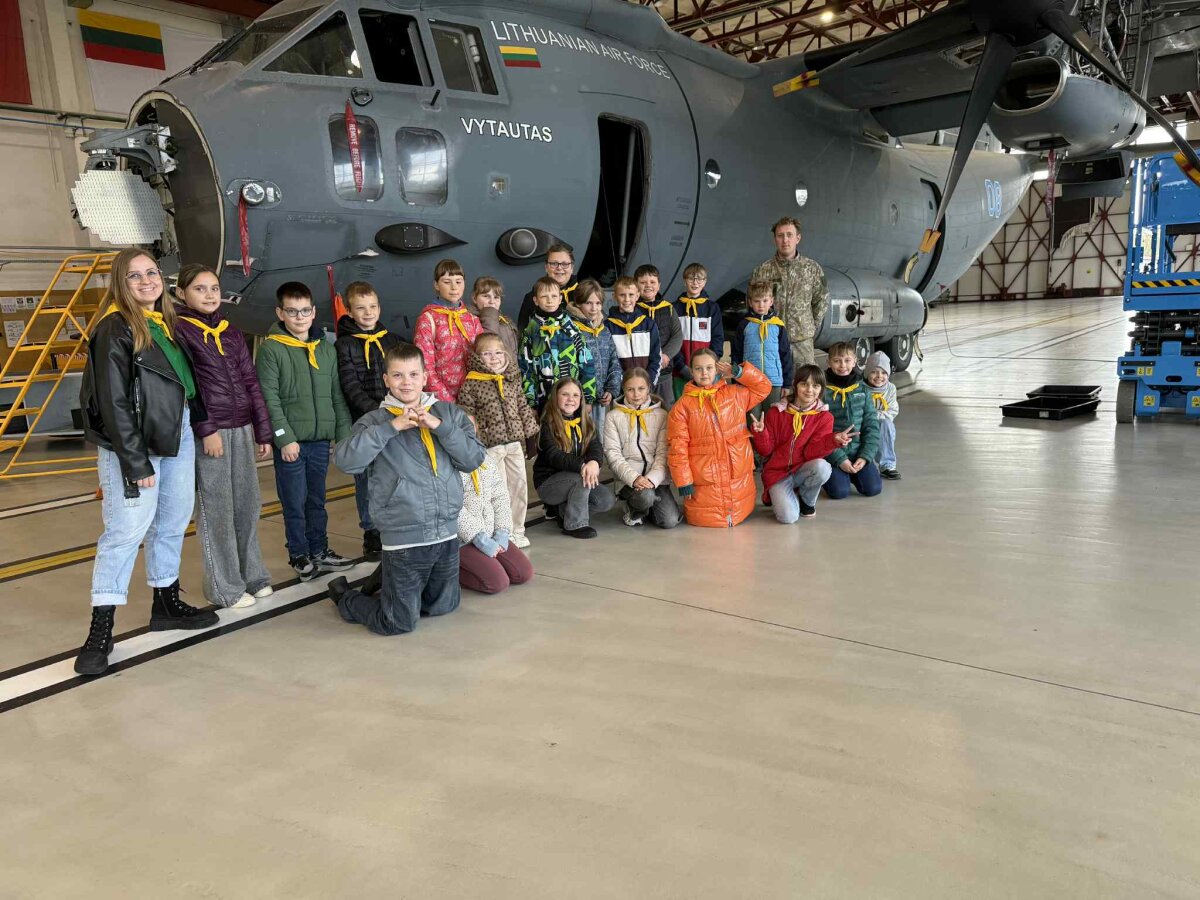 Spalio 10 d. 4b klasės mokiniai turėjo unikalią galimybę apsilankyti Karinių oro pajėgų Šiaulių Aviacijos bazėje. Šis vizitas suteikė galimybę mokiniams iš arti susipažinti su Lietuvos kariuomenės orlaiviais, jų technine priežiūra bei pilotu atliekamomis funkcijomis.
