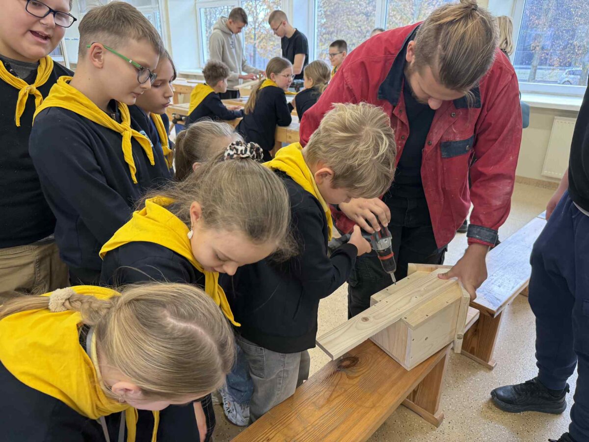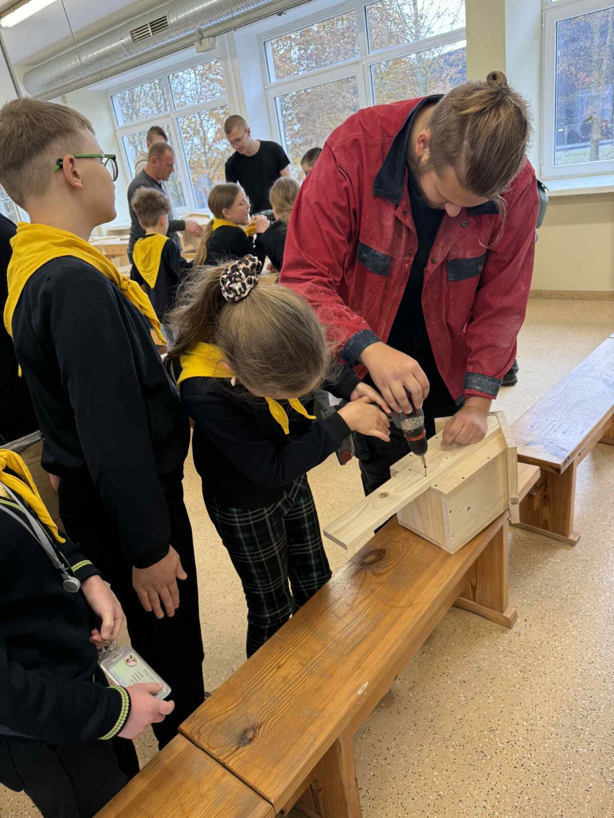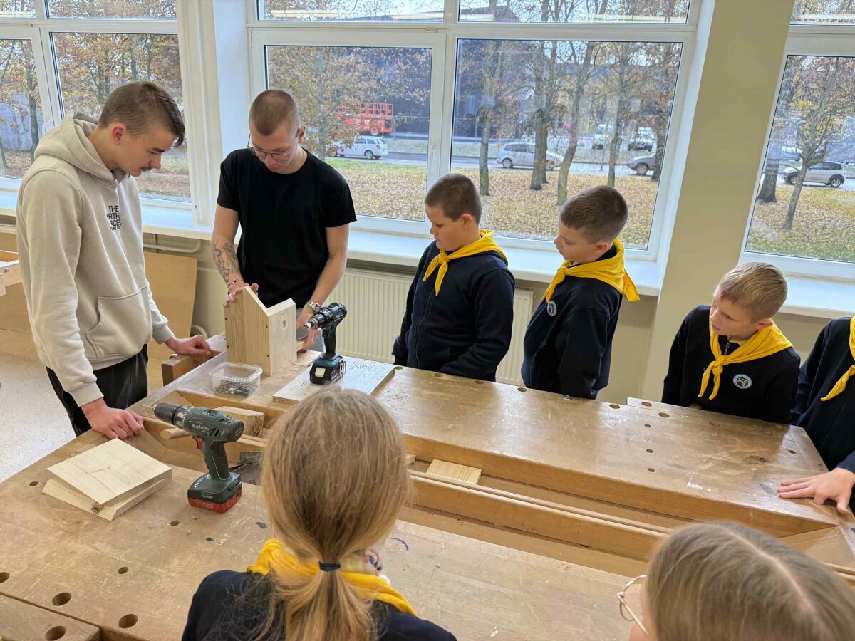 Spalio 30 dieną 4b klasės mokiniai lankėsi Šiaulių technologijų mokymo centre, informacinių technologijų ir statybos skyriuje. Vizito metu mokiniai dalyvavo edukacinėje veikloje „Inkilų dirbtuvės: mokome ir kuriame“, kurios metu susipažino su staliaus profesija ir galėjo stebėti, kaip iš paprastos lentos gimsta paukščių nameliai.