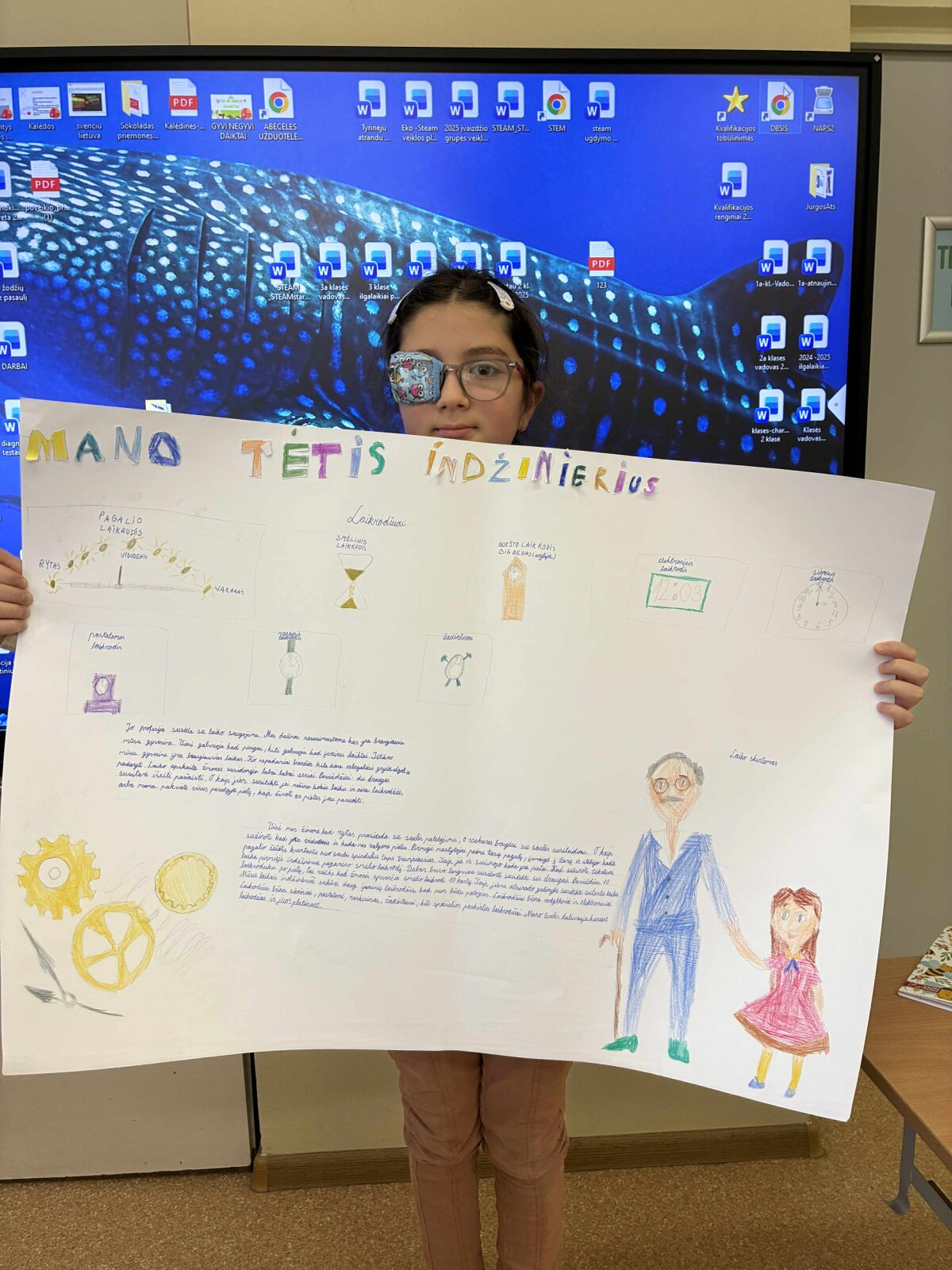 3A klasėje vyko projektinė veikla „Tėvelių profesijos muziejus“, kurios metu mokiniai kartu su tėveliais gilinosi į įvairias profesijas ir jų svarbą visuomenei. Projekto tikslas: stiprinti mokinių ryšį su šeima, ugdyti pagarbą tėvelių darbui, skatinti kūrybinį mąstymą ir viešojo kalbėjimo įgūdžius.