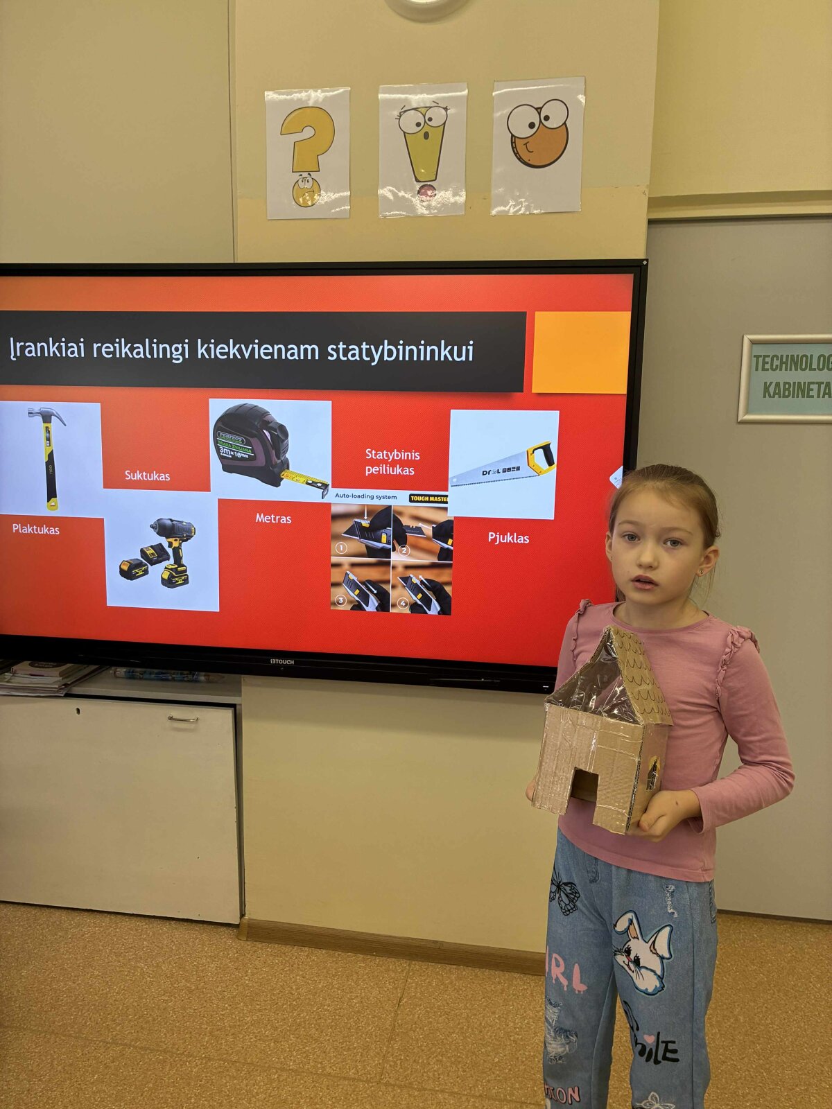 Mokiniai namuose, padedami tėvelių, rengė trumpus profesijų pristatymus. Į klasę jie atsinešė ir profesijas atspindinčius daiktus: darbo įrankius, maketus, simbolinius objektus, nuotraukas. Kiekvienas vaikas turėjo galimybę pristatyti savo tėvelių profesiją, papasakoti apie jos ypatybes, kasdienius darbus, atsakomybes ir įdomius nutikimus.