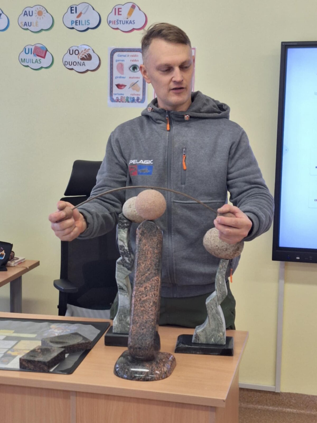 Gaudrės tėtis papasakojo apie savo kūrybą dirbant su akmenimis. Jis parodė, kaip paprastas akmuo gali virsti nuostabiu kūriniu, ir pristatė savo kūrybinius darbus. Be to, Gaudrės tėtis yra dailininkas, kurio kūryba apima tiek piešinius, tiek akvareles.