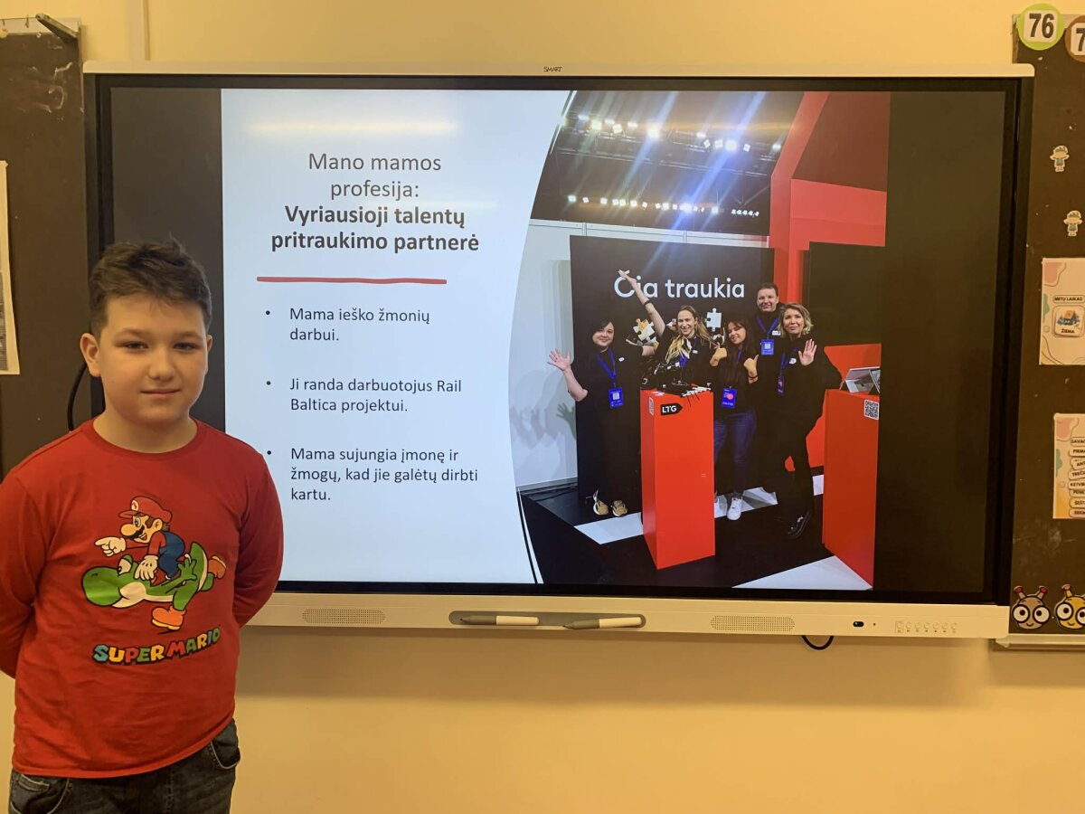 Gruodžio 5 d. mokiniai kartu su savo tėvais pristatė jų profesijas ir pasidalijo įspūdžiais apie kasdienius darbus. Tėvai papasakojo apie savo veiklą, atskleidė, kokių įgūdžių ir žinių reikia norint sėkmingai atlikti savo pareigas. Mokiniai ne tik sužinojo apie tėvų profesijas, bet ir turėjo galimybę pamatyti jų darbo įrankius bei įrangą.