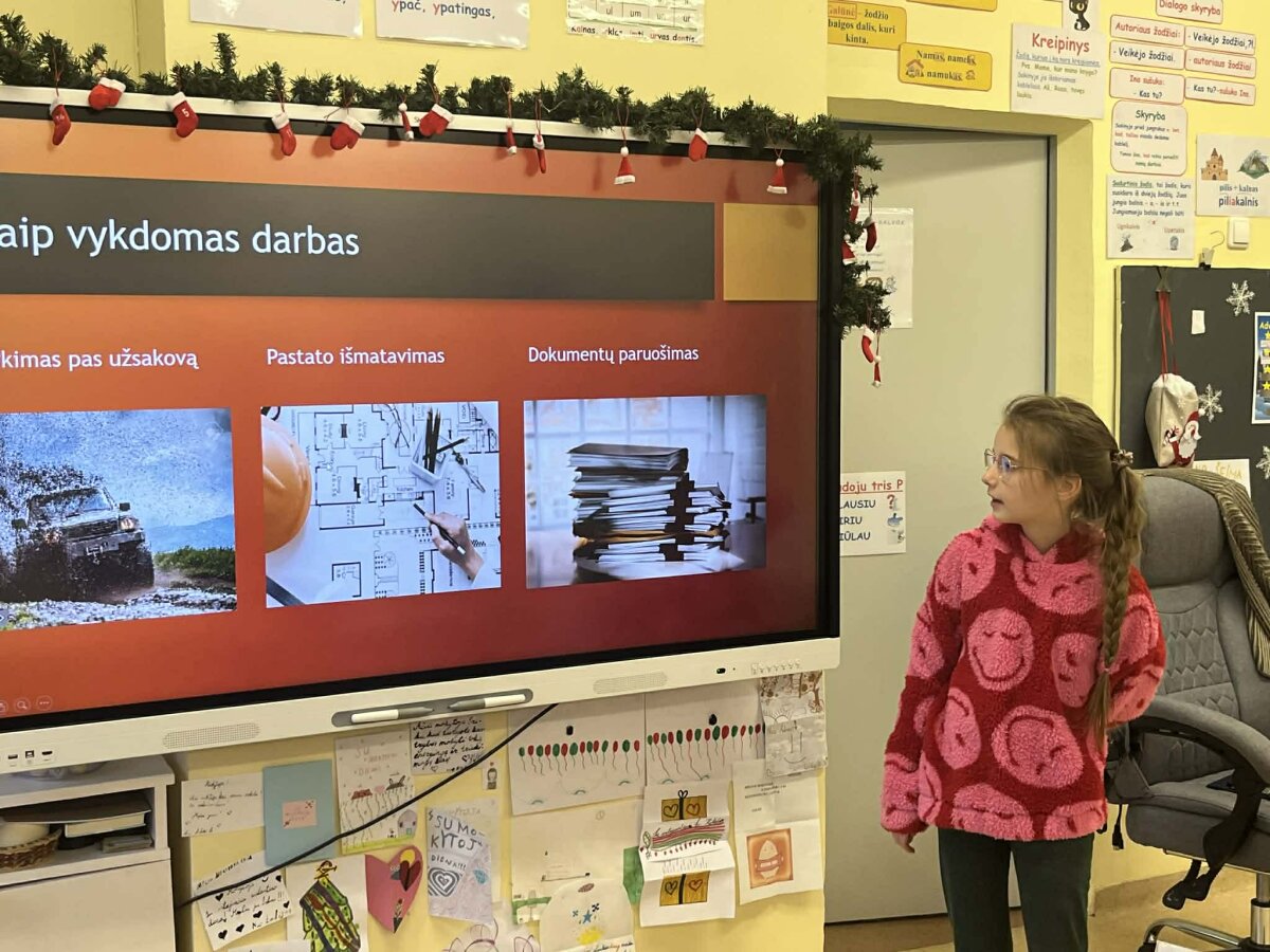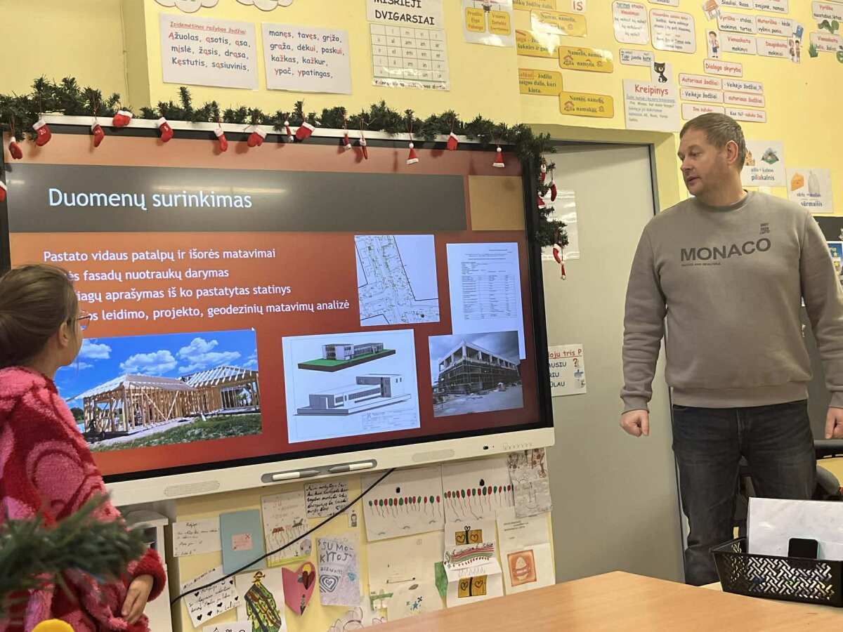 Projekto metu į klasę taip pat atvyko mokinių tėveliai. Gabrieliaus tėtis, dirbantis elektriku, išsamiai pristatė savo profesiją ir pabrėžė jos reikšmę saugiam bei sklandžiam kasdieniam gyvenimui. Agnetės tėtis mokinius supažindino su atsakingu ir preciziškumo reikalaujančiu matininko darbu. Svečiai dalijosi profesine patirtimi, pasakojo apie kasdienius darbo iššūkius ir atsakinėjo į mokinių klausimus.
